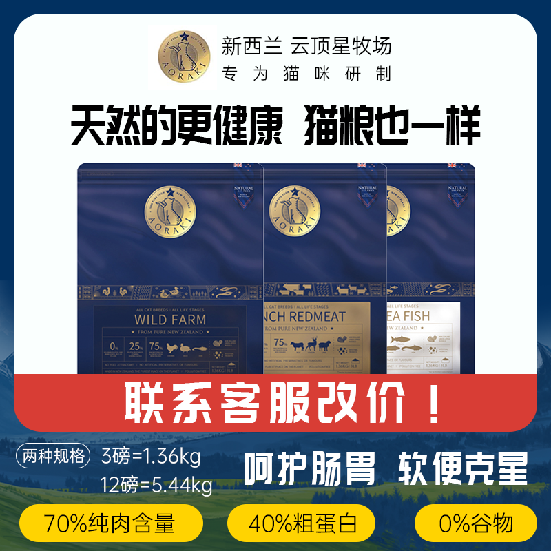📚 云顶星猫粮新西兰aoraki全期农场鸡肉牧场红肉深海鱼成猫幼猫主粮