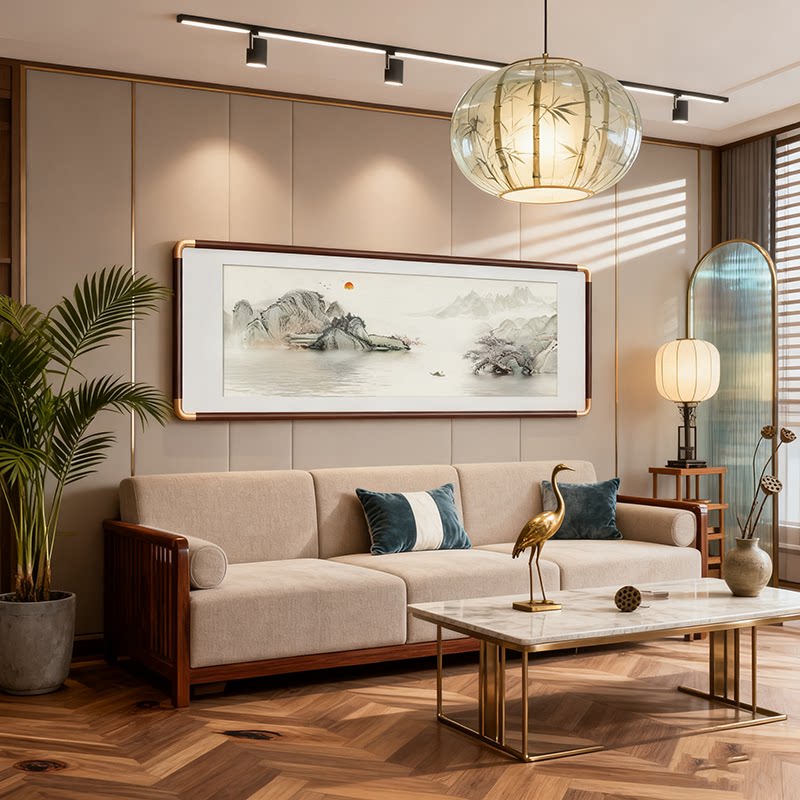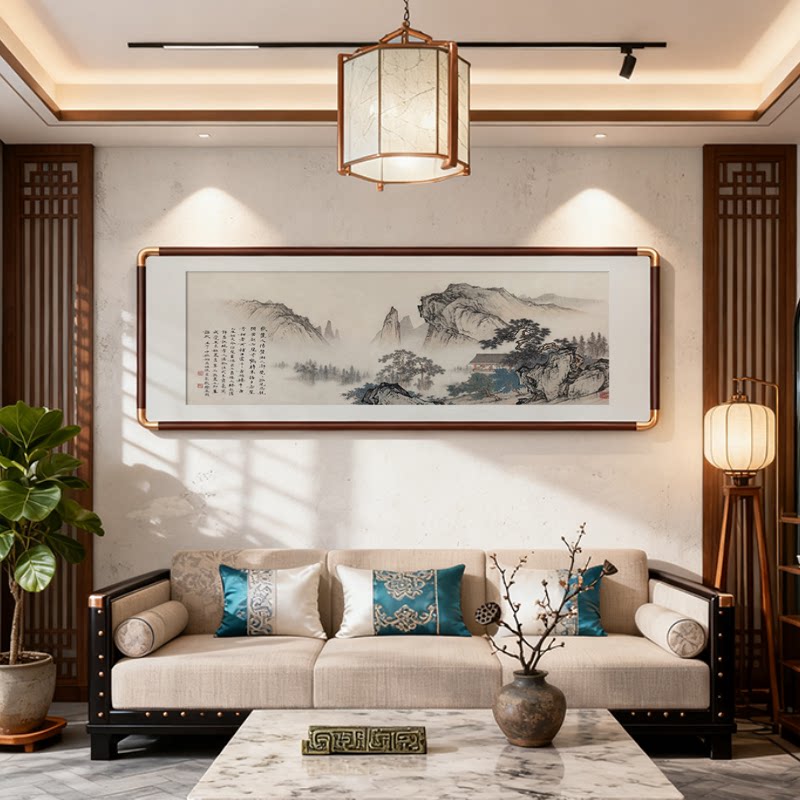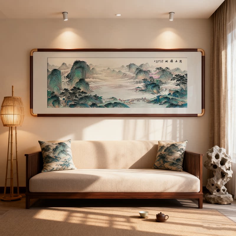 📚 新中式客厅装饰画沙发背景墙挂画茶室办公室张大千山水风景画国画