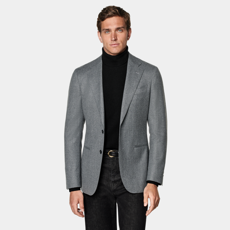 📚 25SUITSUPPLY-中灰色S120支羊毛法兰绒商务休闲西装上衣外套