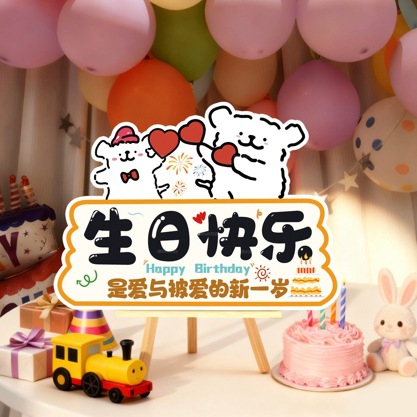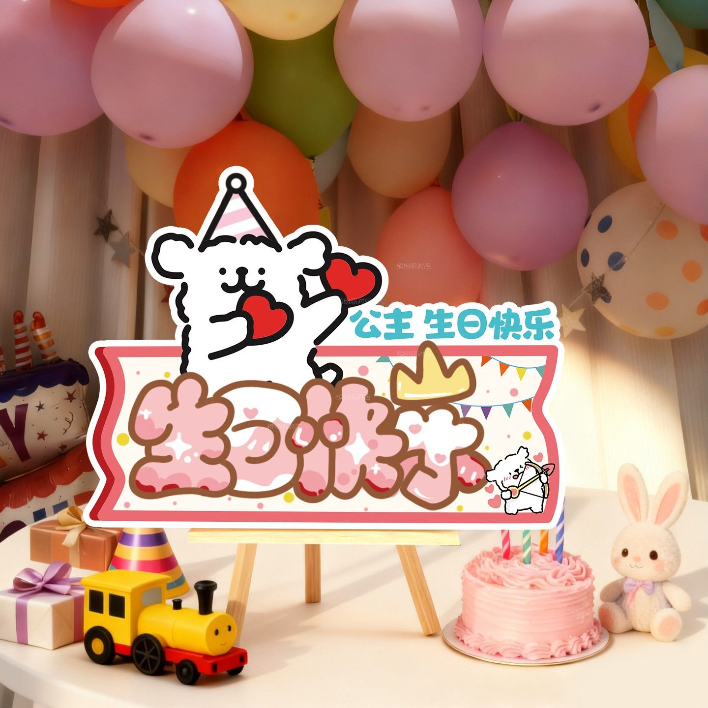 📚 生日KT板摆件场景装饰品男孩女生线条小狗桌面字牌氛围感布置道具