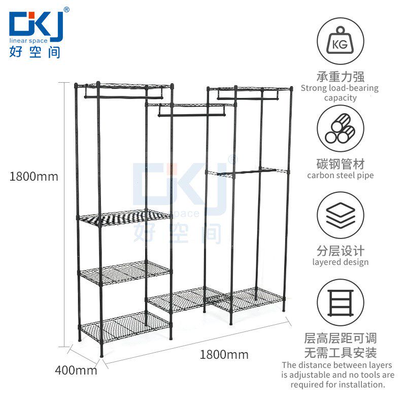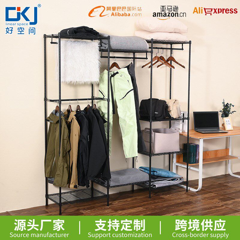 📚 置地式多功能三列衣橱架落地卧室衣柜服装店挂衣架服装收纳架