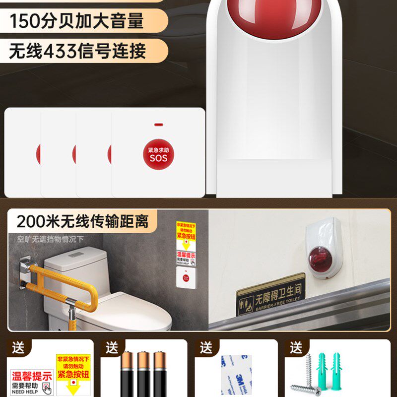 📚 残疾人呼叫按钮卫生间一键紧急报警器无线远距离联动声光警报装置