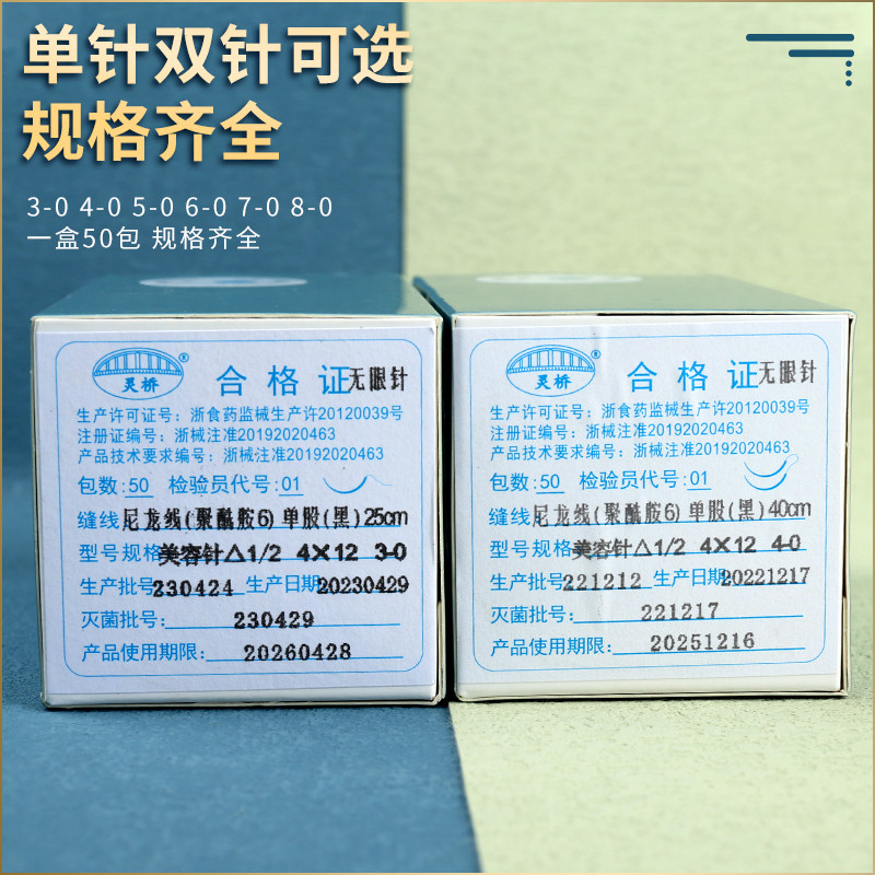 📚 灵桥带针缝合线手术双眼皮埋线非吸收性美容线外科医用带线缝合针