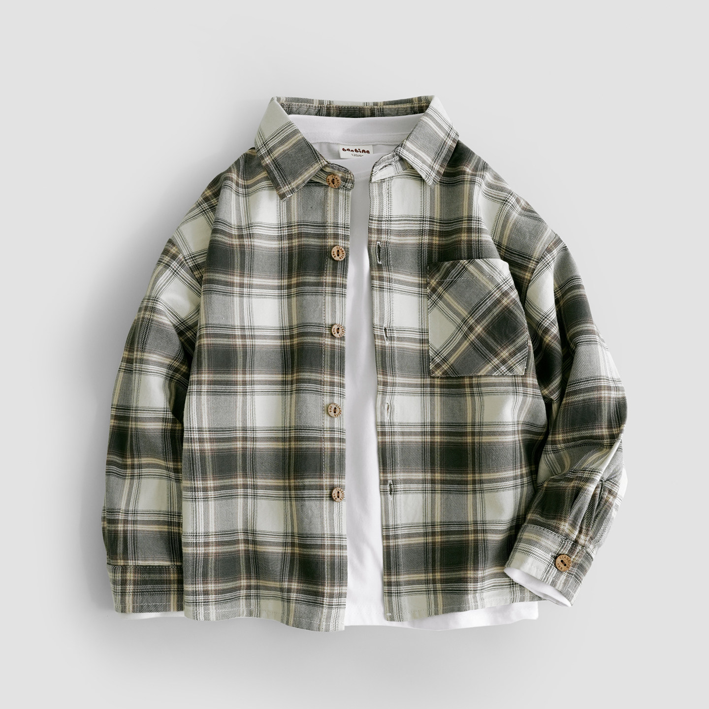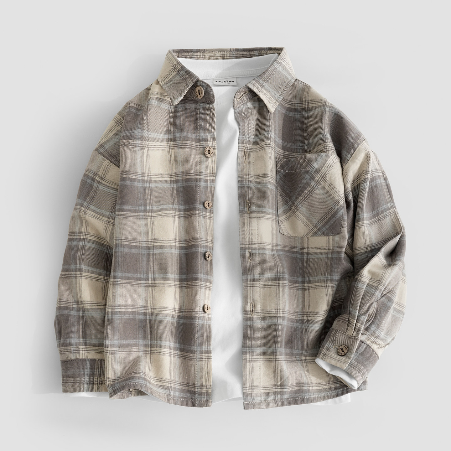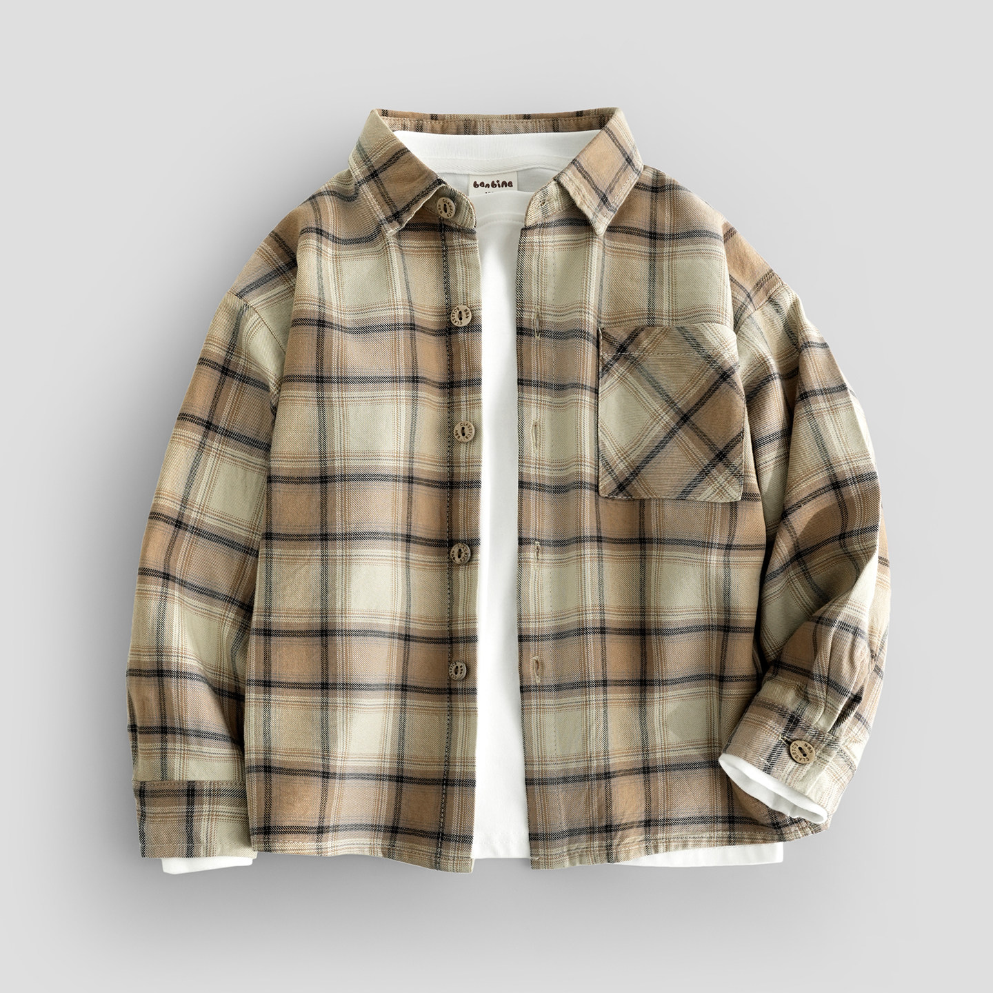 📚 班比纳童装春季新款儿童衬衫长袖纯棉外套男童衬衣磨毛格子中大童