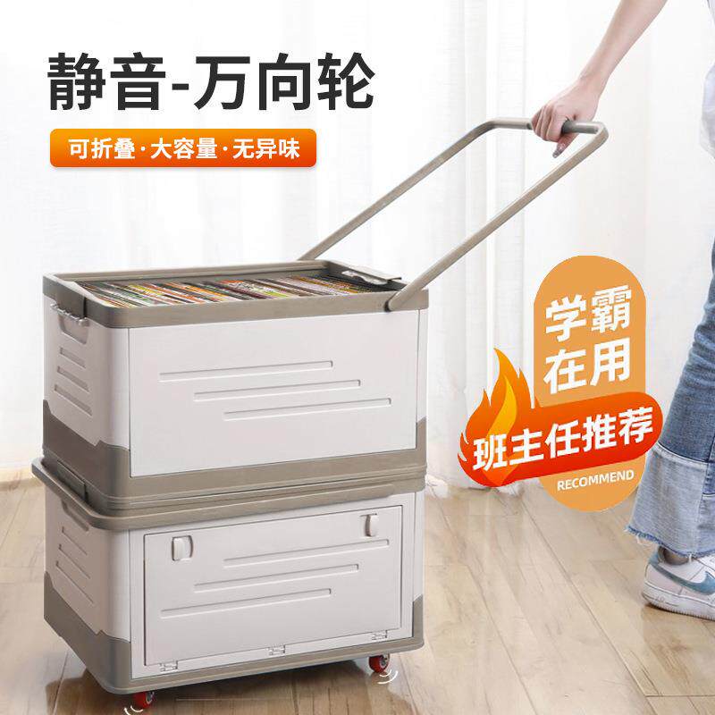 📚 折叠收纳箱学生书箱教室收纳盒带轮拉杆车寝室宿舍家用储物箱