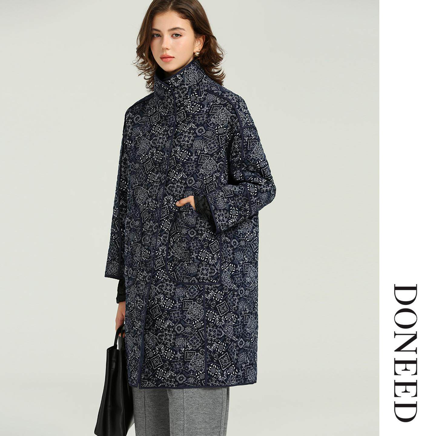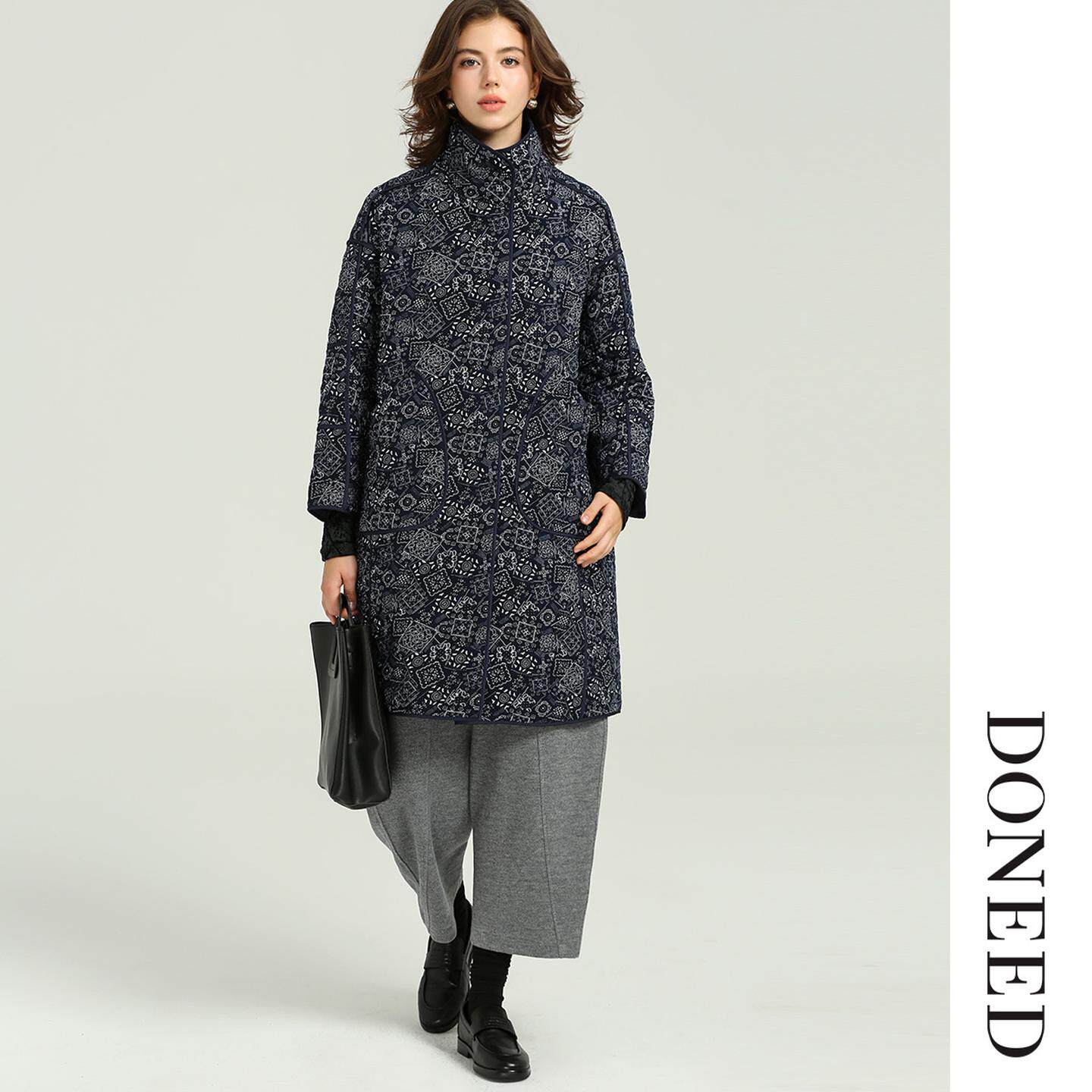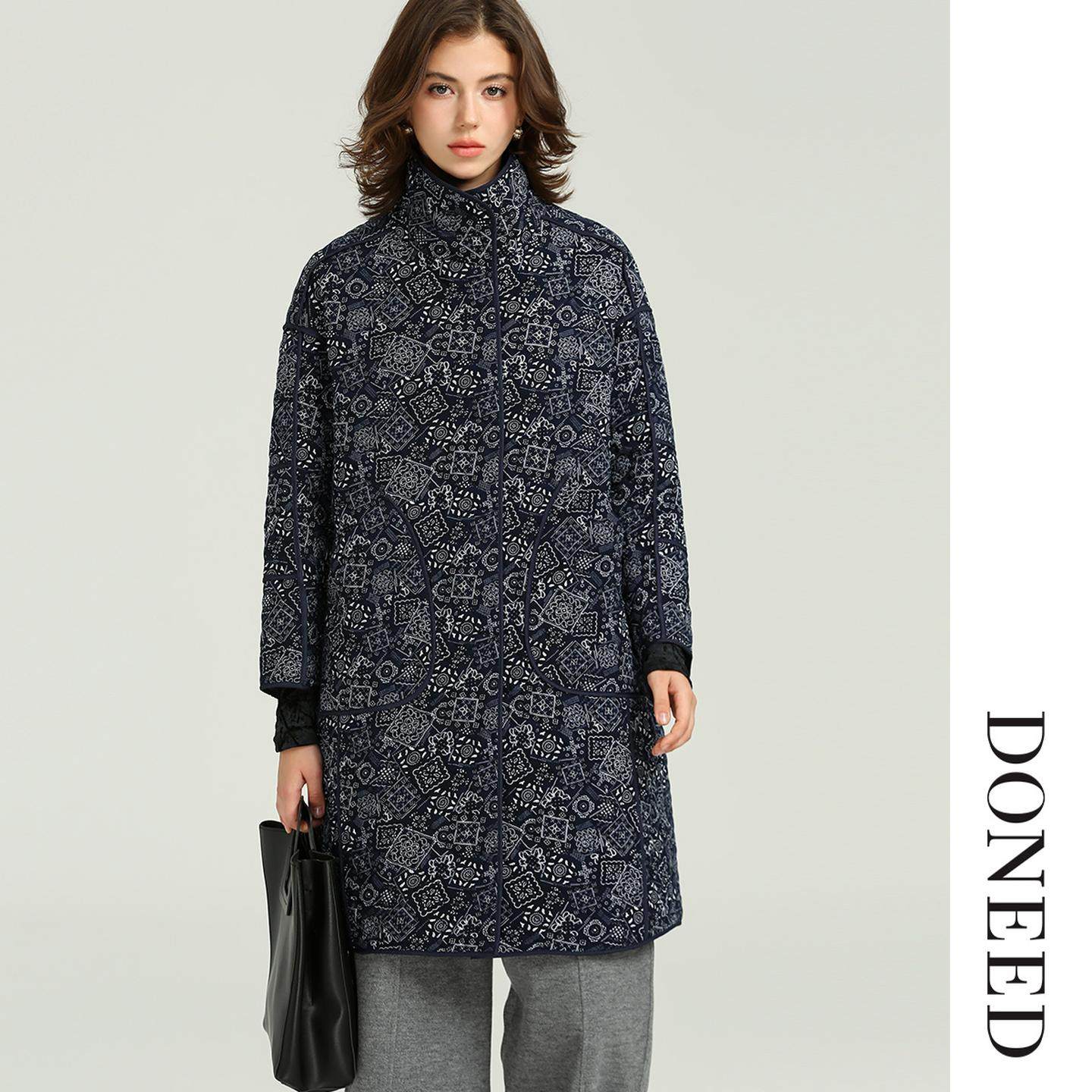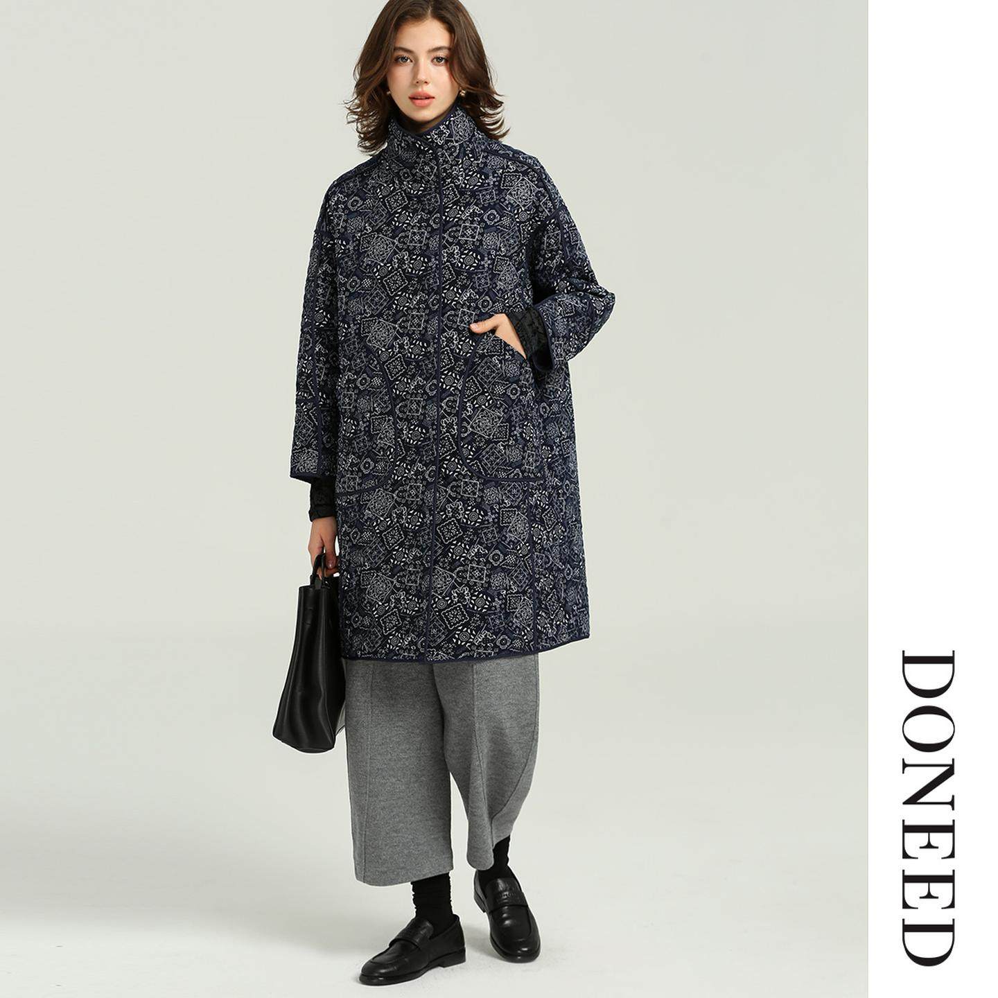 📚 DONEED2025冬季新款国风印花宽松保暖高领棉衣外套女