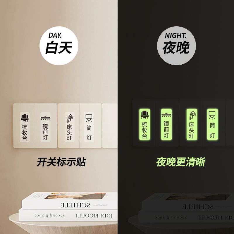 📚 电灯开关标识贴家用夜光标签指示创义大利面板插座装饰墙贴纸按键