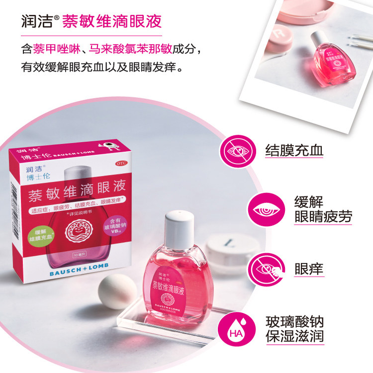 📚 润洁萘敏维滴眼液奈敏维干涩疲劳眼睛缓解杀菌止痒酸钠玻璃滴眼药