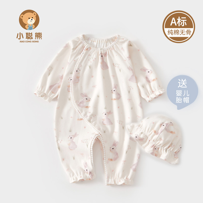 📚 婴儿衣服春秋季带帽纯棉连体衣可爱女宝宝a类秋装公主百天三个月9