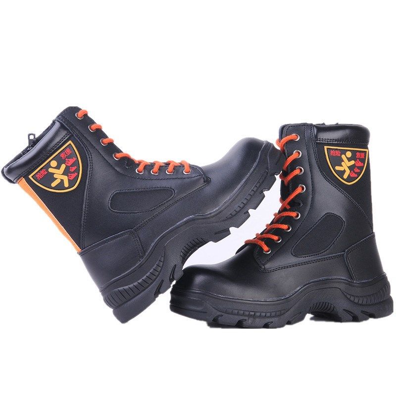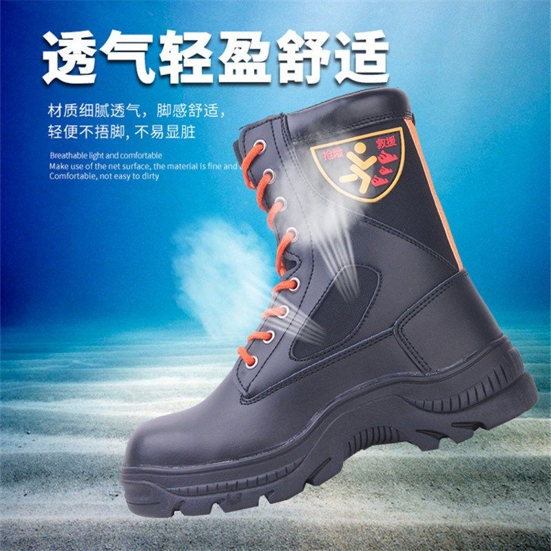 📚 消防应急抢险救援靴防砸防扎劳保鞋便携X式黑色消防靴