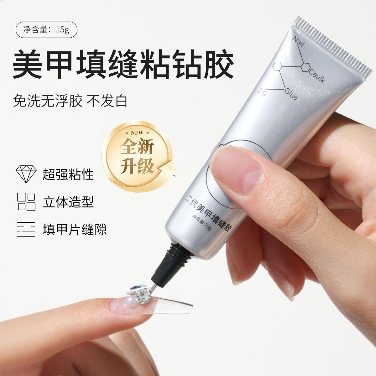 📚 填缝胶美甲免洗粘钻胶不流动光疗免洗大力粘钻胶专用超牢固穿戴甲