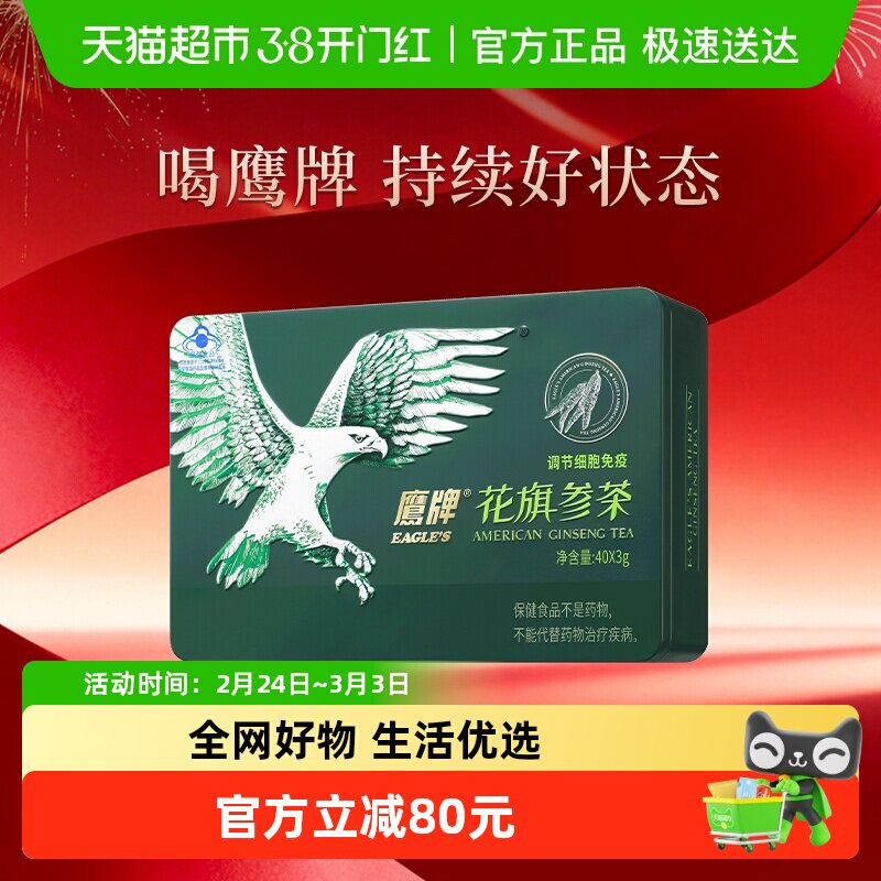 📚 鹰牌花旗参茶西洋参茶3g*40包人参皂苷增强免疫力