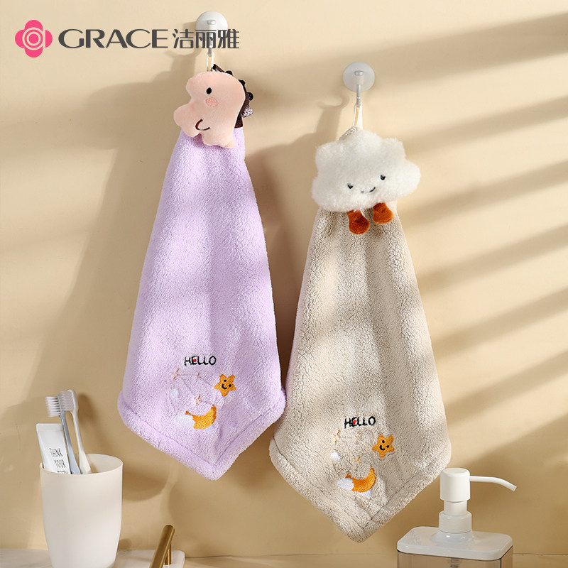 📚 洁丽雅擦手巾挂式可爱洗手巾卡通擦手毛巾卫生间擦手帕厨房抹手布