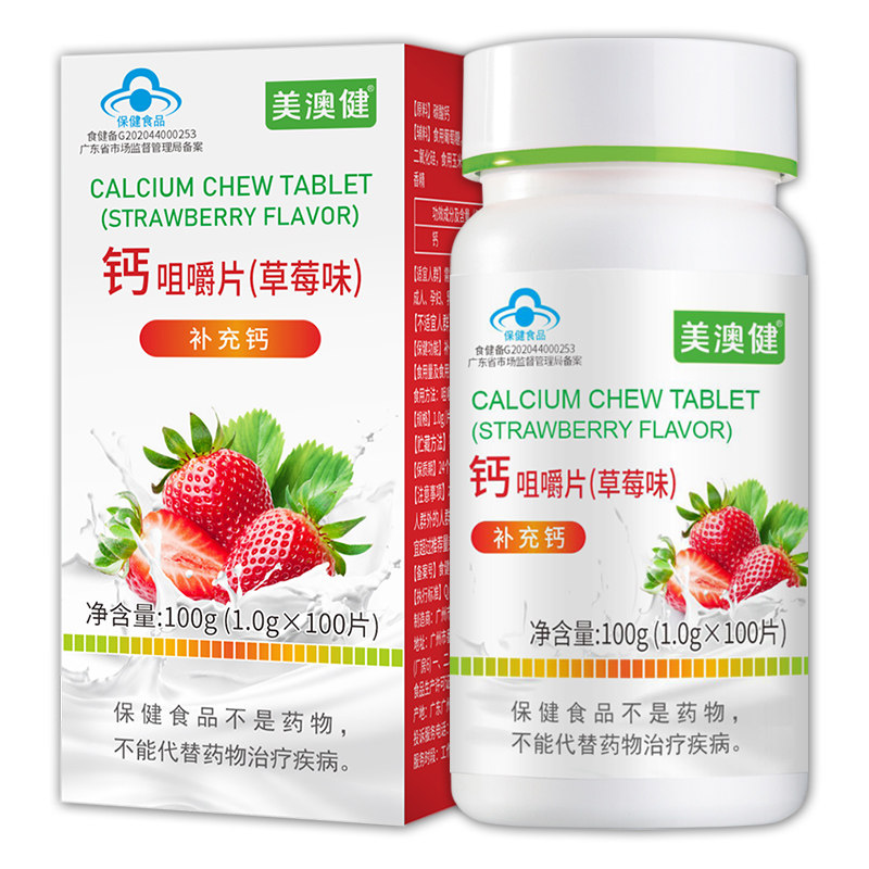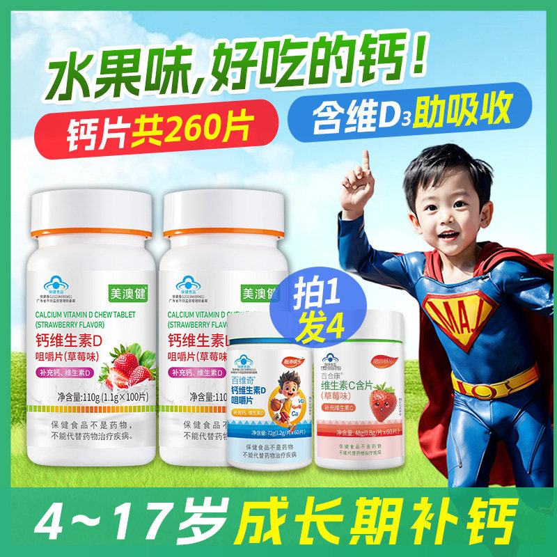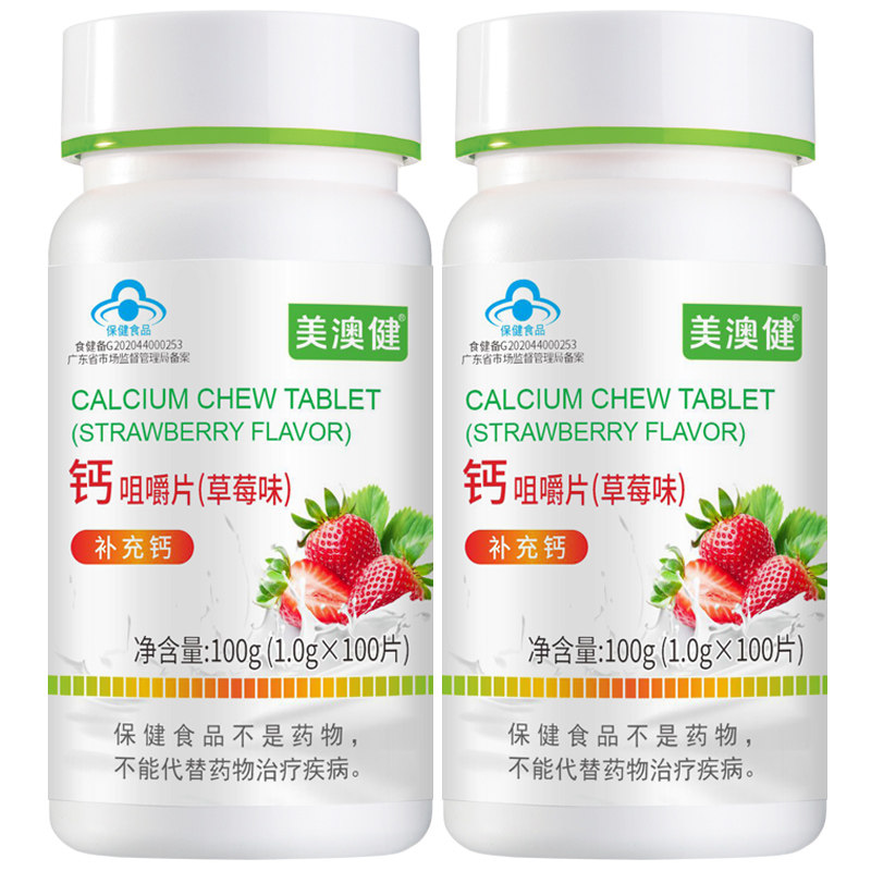 📚 2瓶套装】美澳健儿童钙片维生素D青少年学生成长补钙高水果草莓味