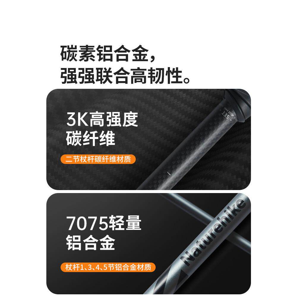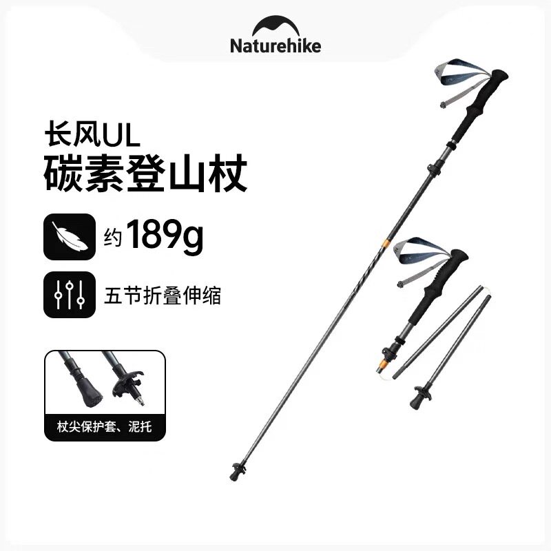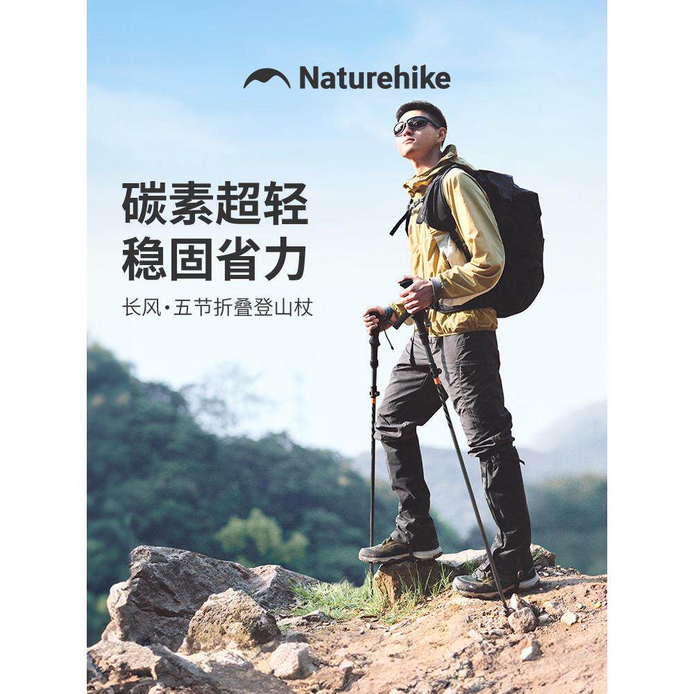 📚 挪客长风五节折叠碳纤维登山杖专业户外徒步手杖超轻碳素男女