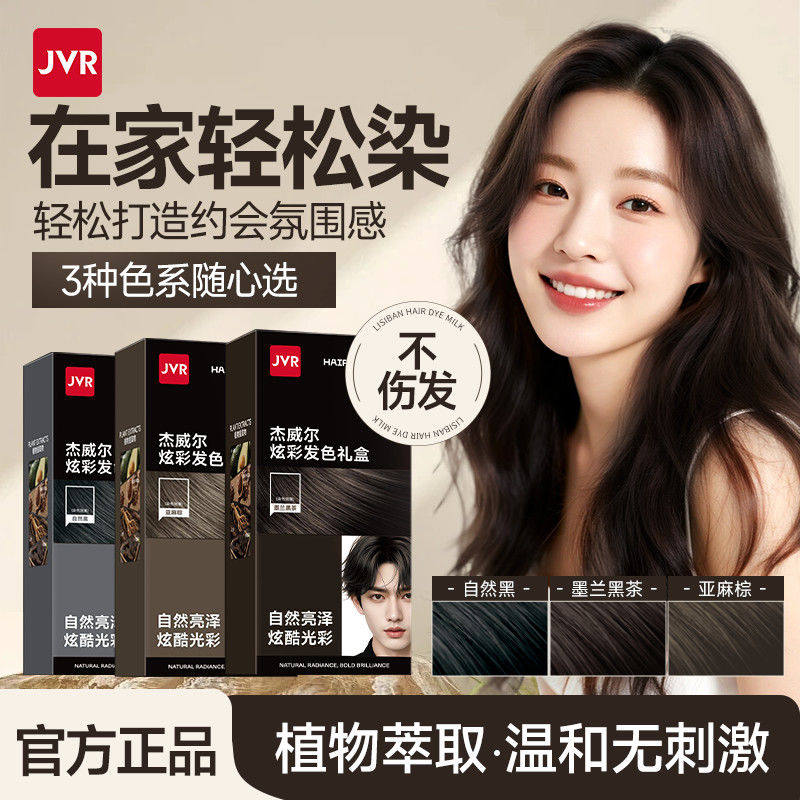 📚 杰威尔男女士染发膏植物染发剂自己在家染头发膏网红流行免漂盖白