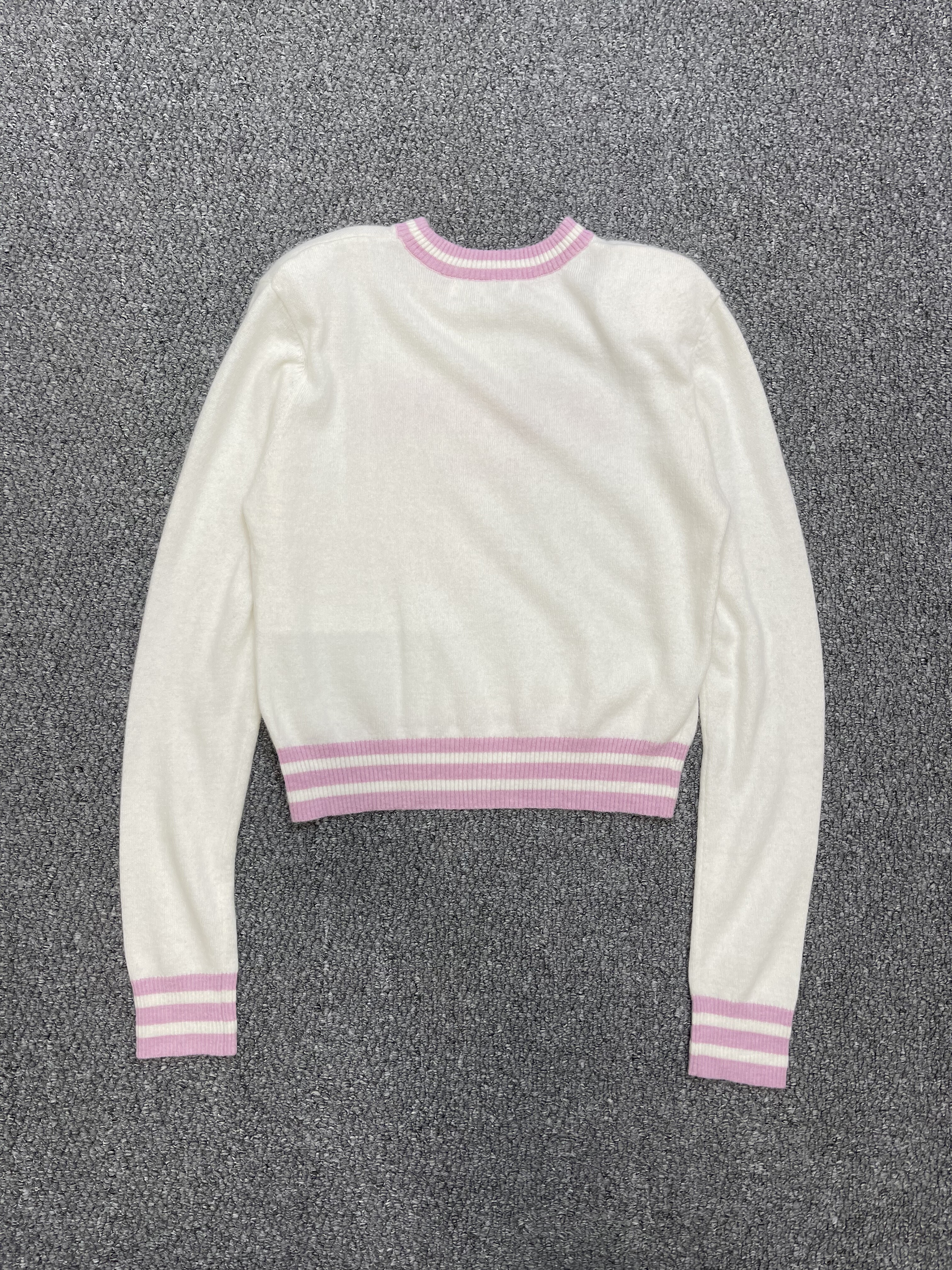 📚 FBB 春季新款针织衫粉白撞色字母光丝纱线含绒显瘦上衣女