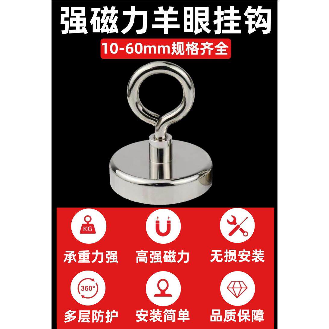 📚 圆形羊眼闭环强力磁铁挂钩免打孔磁钩金属磁性打捞磁铁16