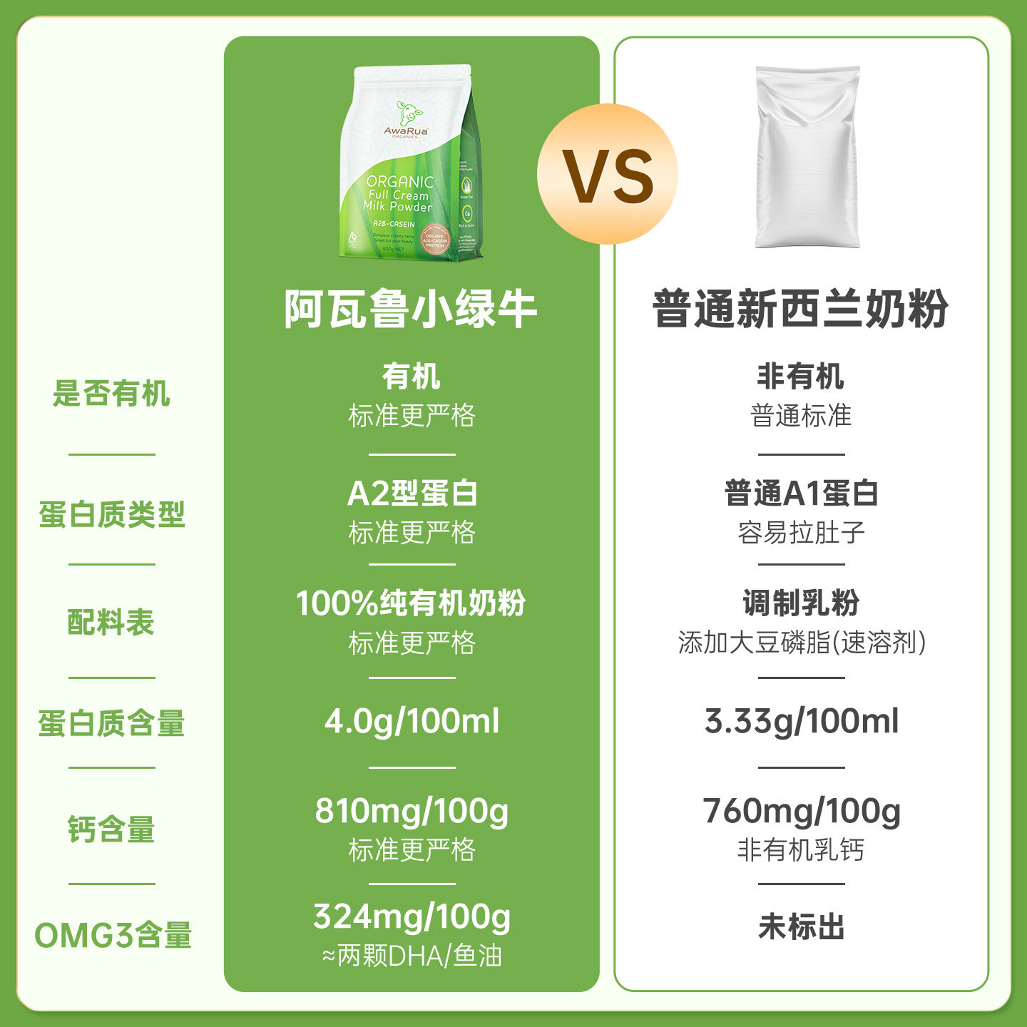 📚 AWARUA阿瓦鲁新西兰进口有机全脂奶粉800g*3袋成人中老年学生儿童