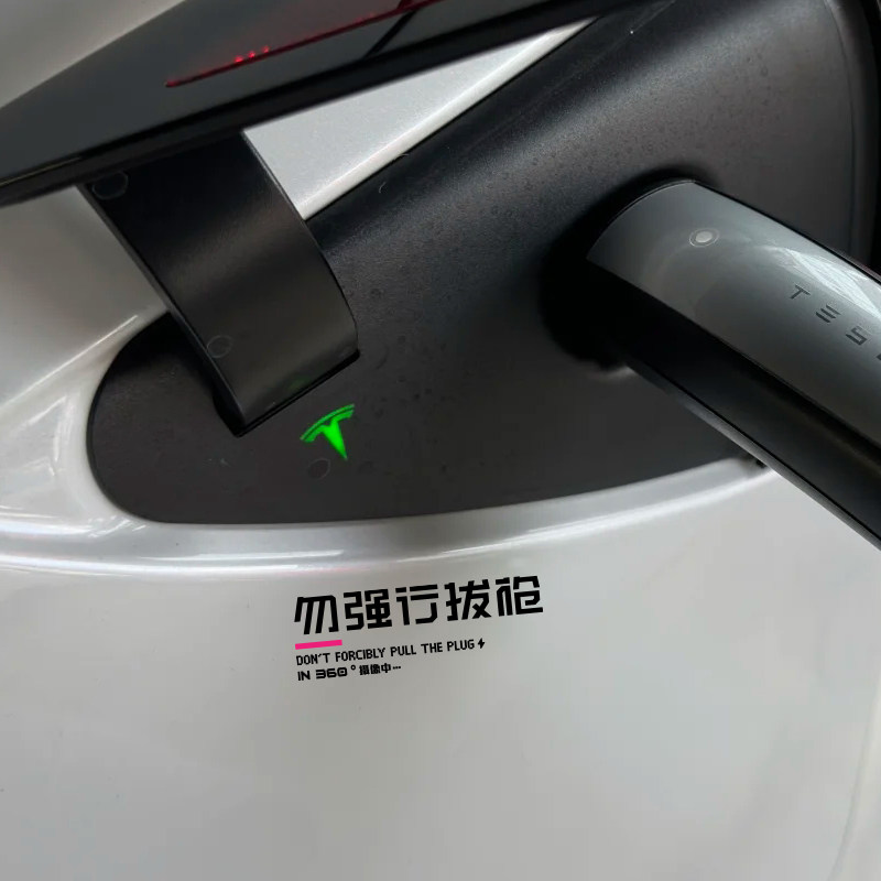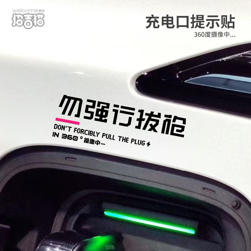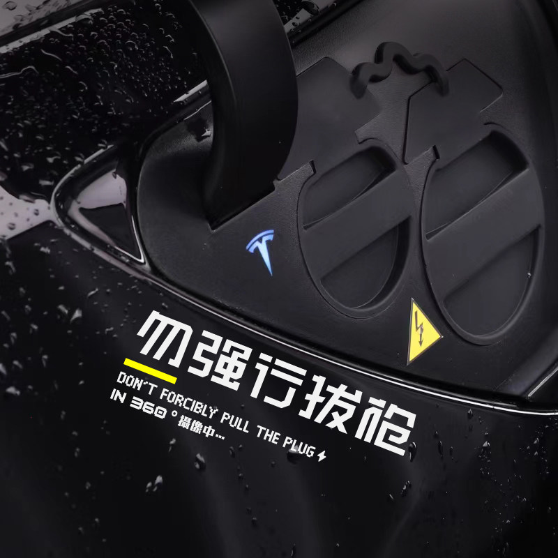 📚 切勿强行拔枪汽车贴纸适用于特斯拉电动车充电口警示贴充电提示贴