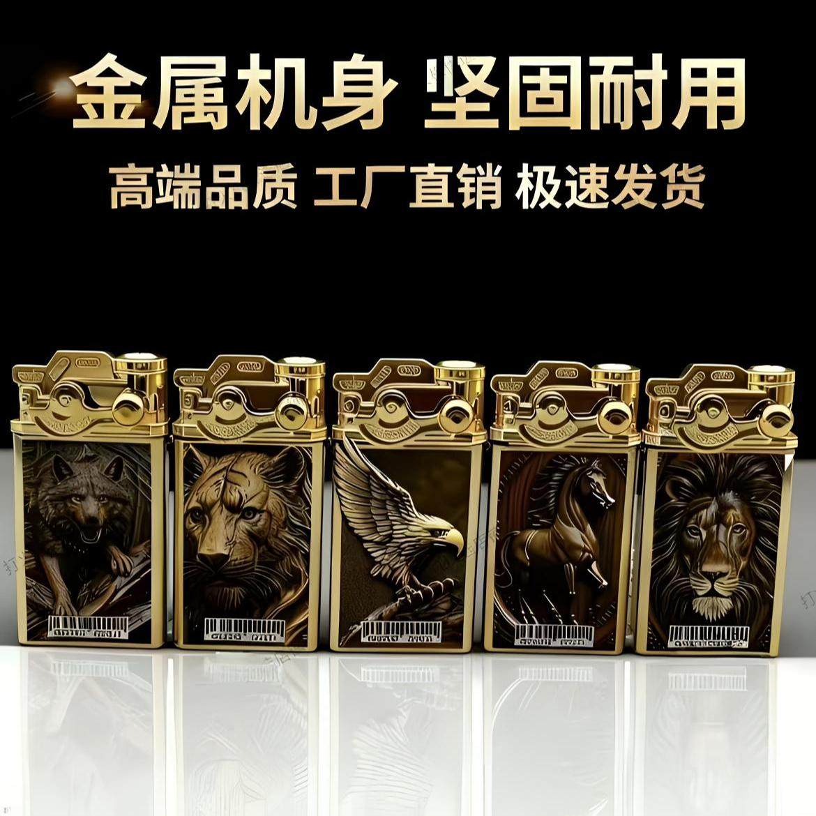 📚 2026年新款正品金属防风打火机动物图案充气复古创意礼物坚固耐用