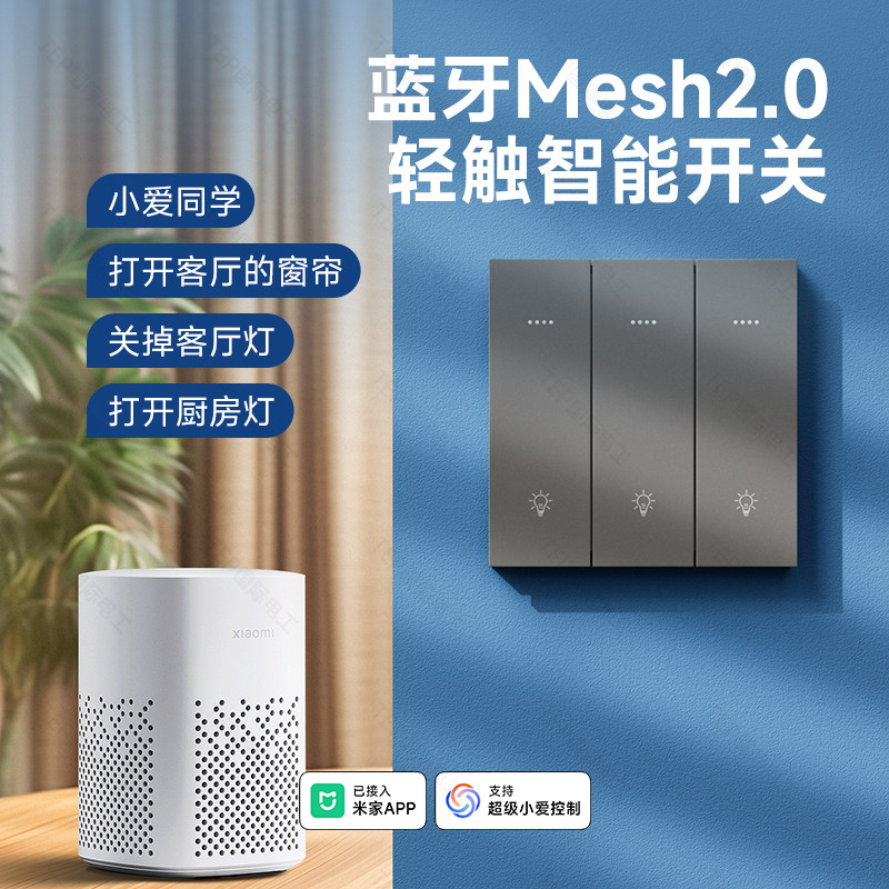 📚 零火版智能开关控制面板蓝牙Mesh2.0已接入米家APP语音遥控灯双控