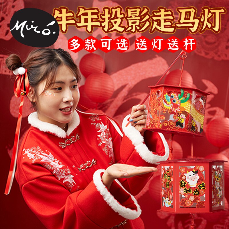 📚 牛年走马灯笼新年春节礼物手工diy儿童自制材料包手提发光花灯