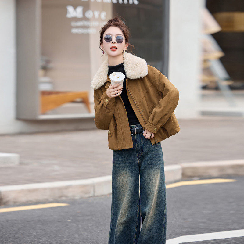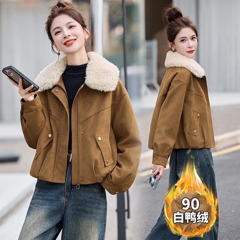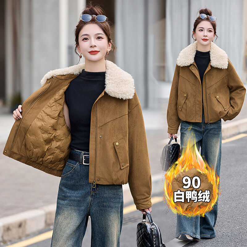 📚 2D044现货主推25冬装新麂皮羽绒服毛领可脱卸90绒短款外套羽绒服