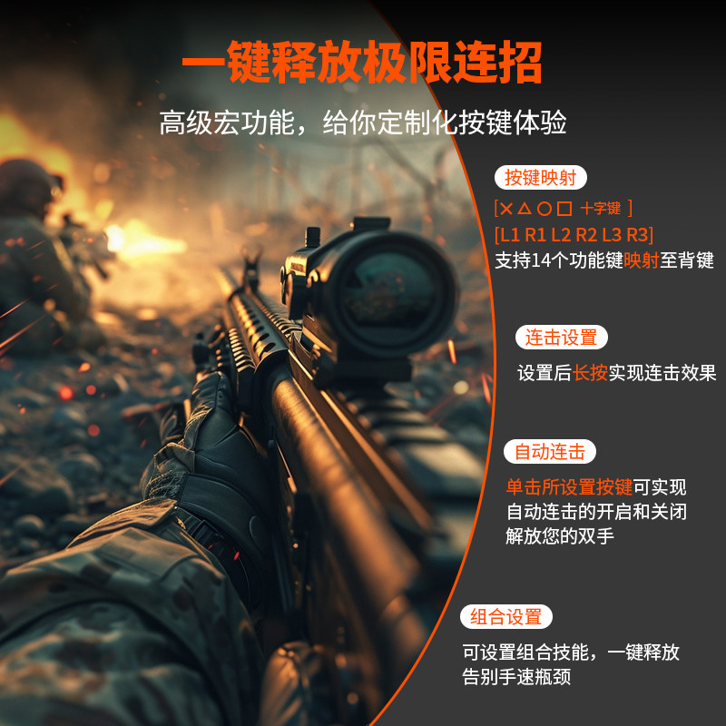 📚 CharmFocus PS5原装四背键精英手柄后侧背夹FPS游戏连发映射连招
