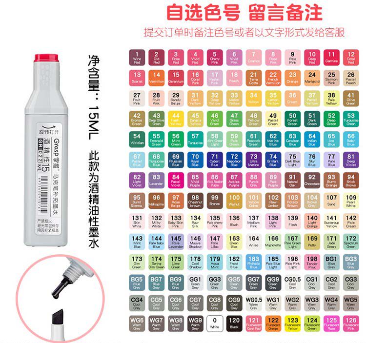 📚 掌握马克笔补充液单色单支双头24色36色48色60色80色墨水补色爱好