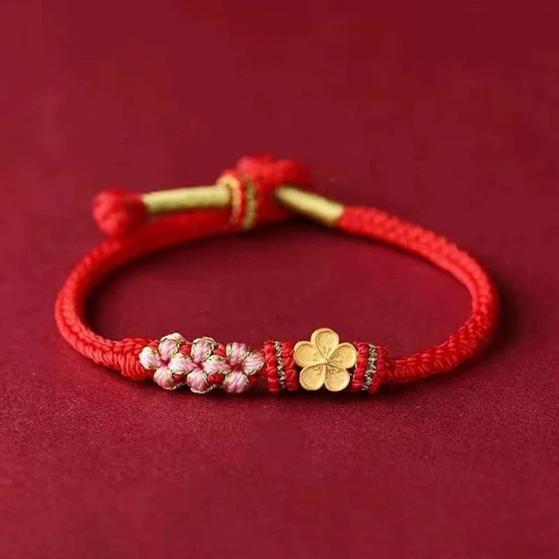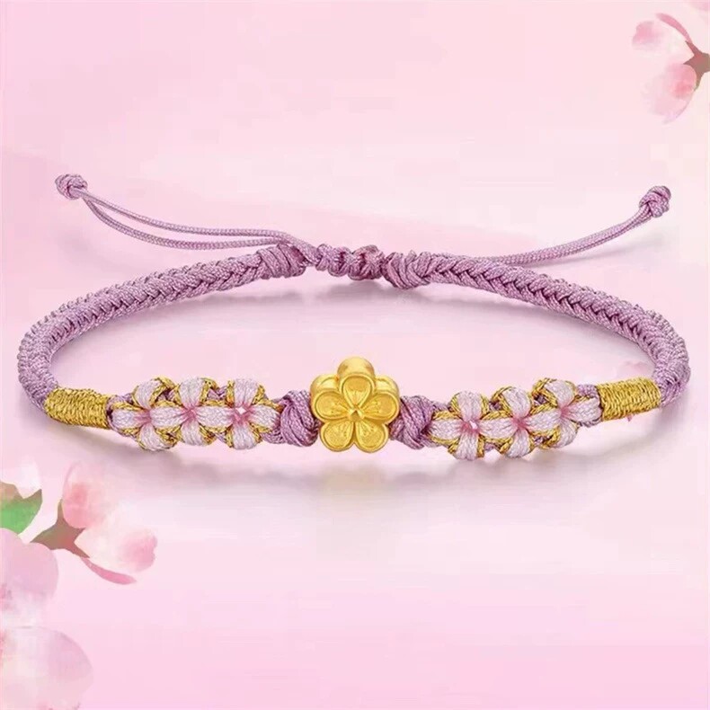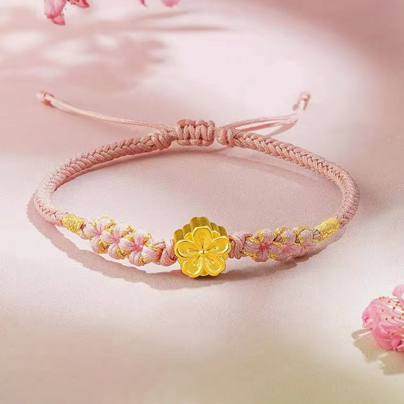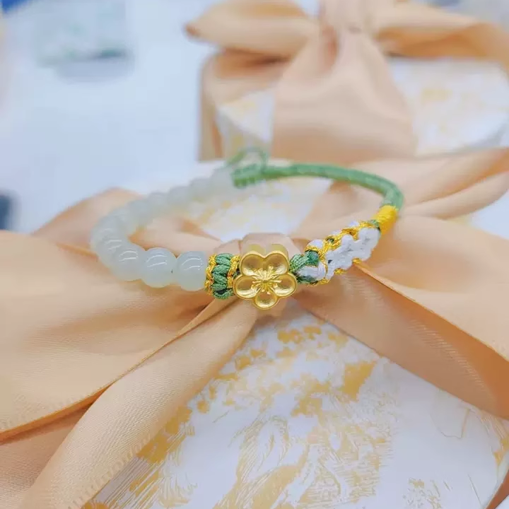 📚 黄金包银两世欢小桃花吊坠黄金手链转运珠和田玉手串情侣编织手绳