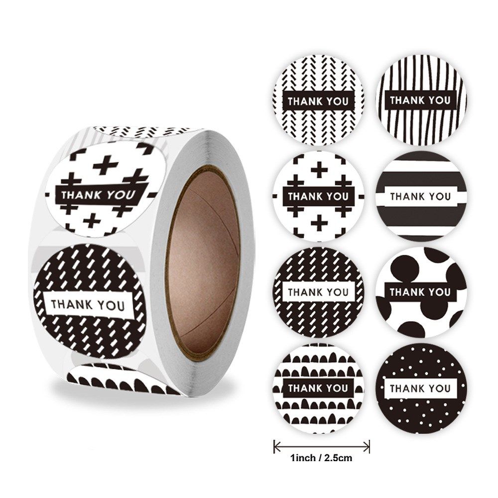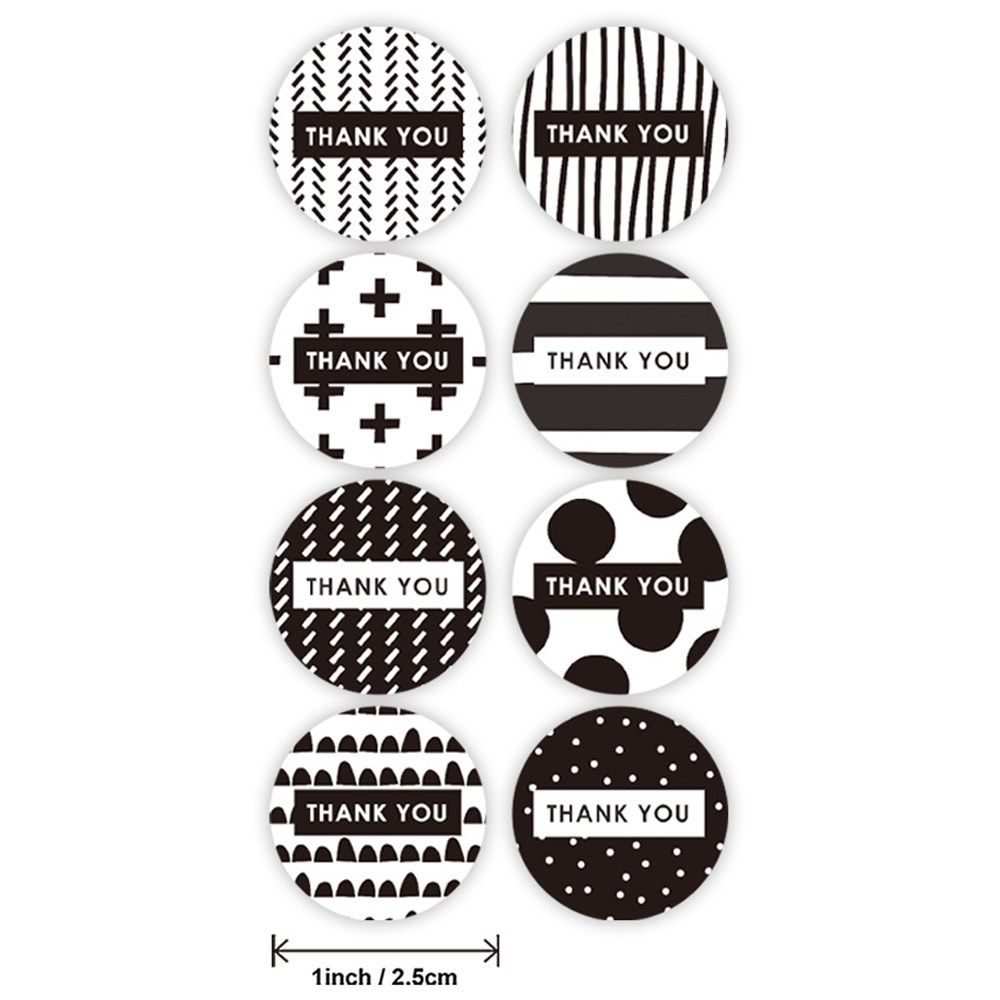 📚 50-500pcs Black & White Thank You Stickers 8 Different D