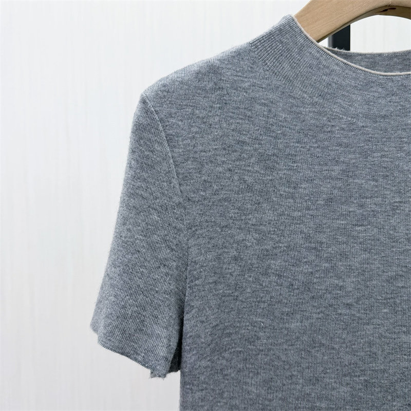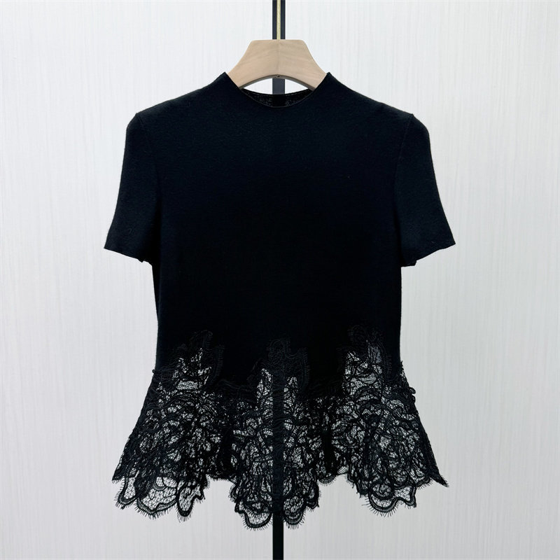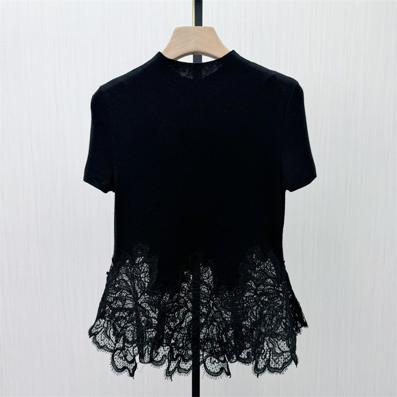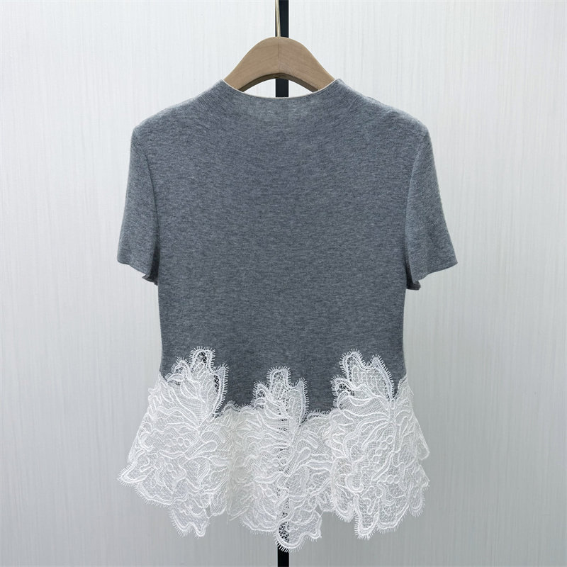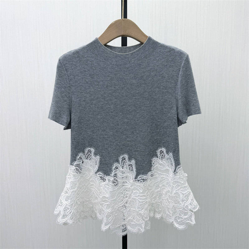 📚 良月●2026春季新品 蕾丝拼接短袖针织衫女气质修身显瘦上衣1092