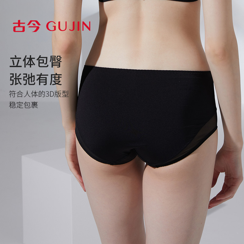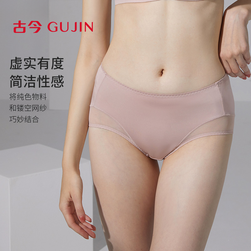 📚 古今内衣女士舒适弹力纤维网纱拼接光滑中腰三角内裤女