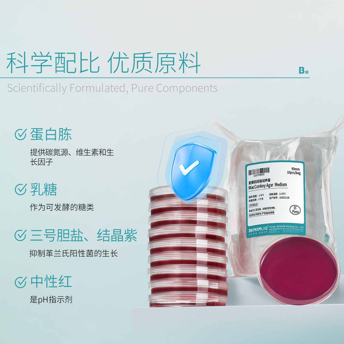 📚 比克曼生物麦康凯琼脂平板9cm沙门氏菌志贺氏菌选择分离培养无菌