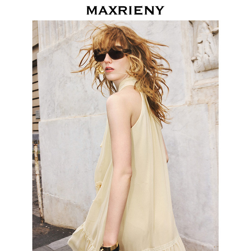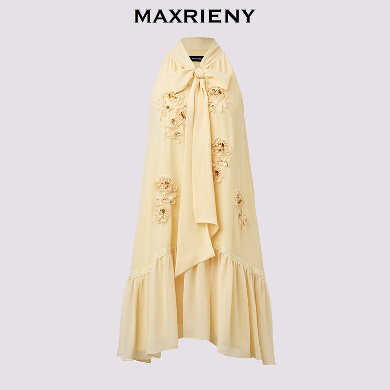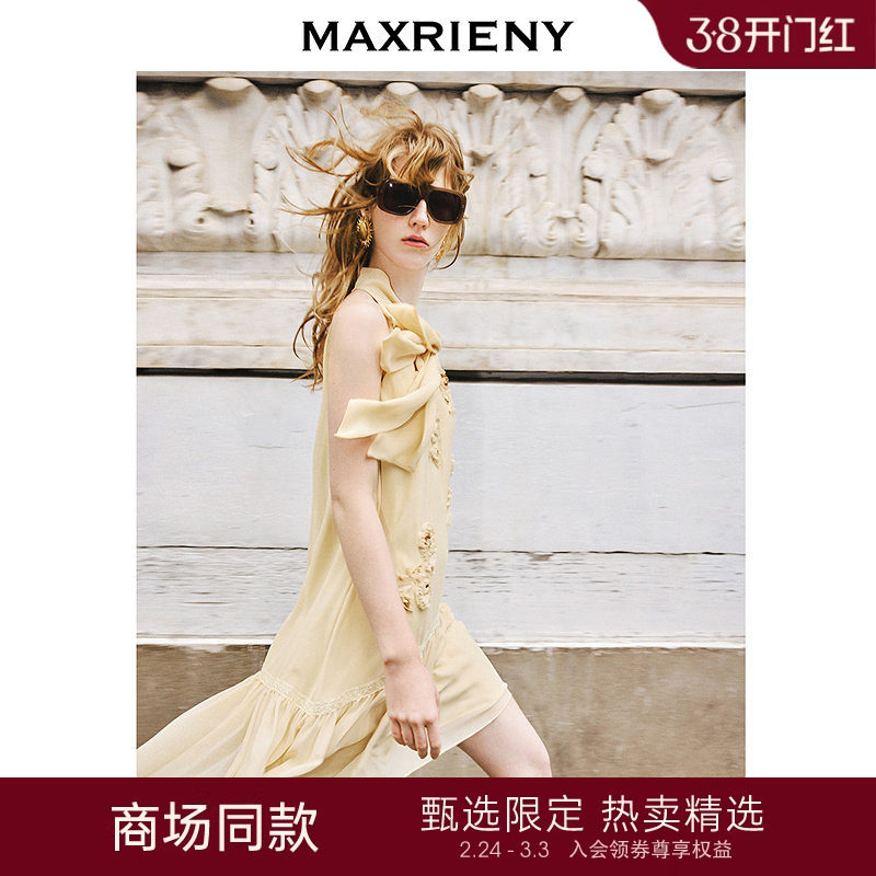 📚 【主题纪念款】MAXRIENY半夏玫瑰连衣裙杏黄无袖A摆裙子高级气质