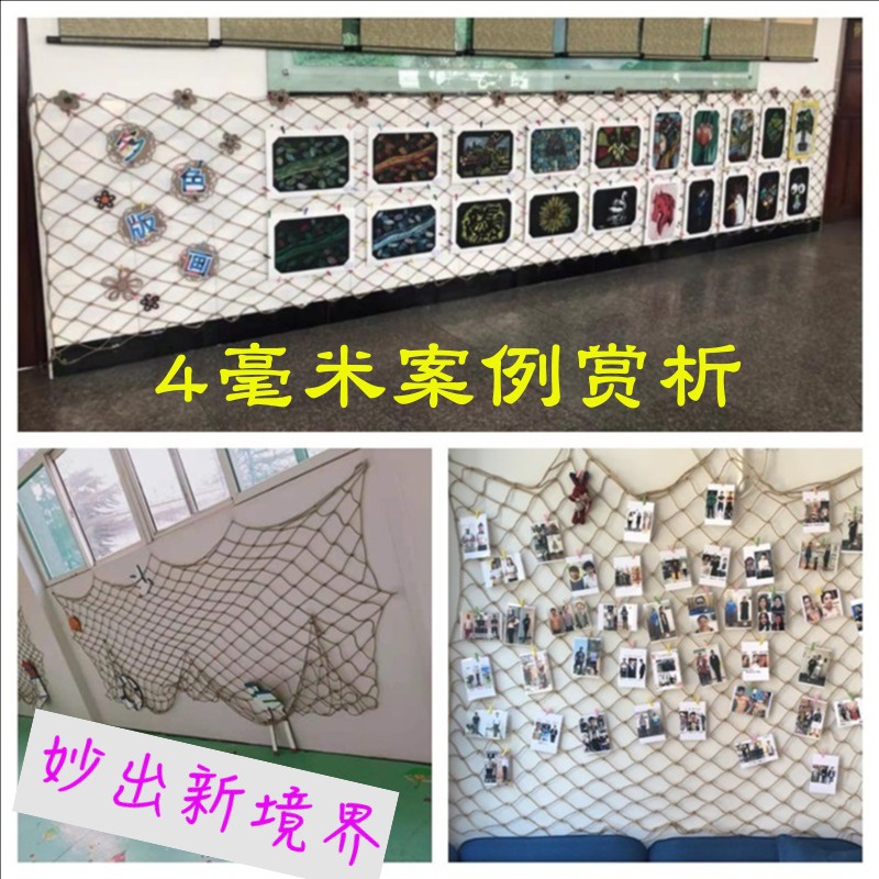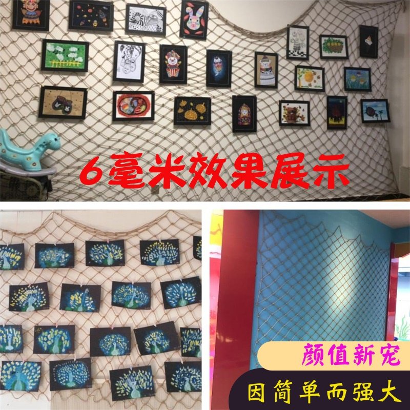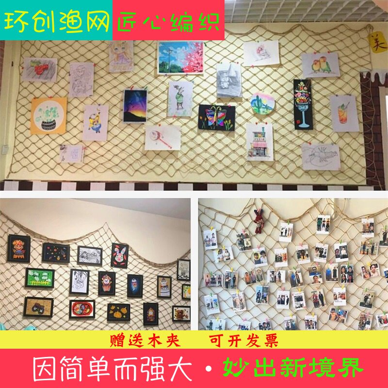 📚 创意照片墙主题留言墙面装饰麻绳挂画渔网幼儿园环创麻绳网格装饰