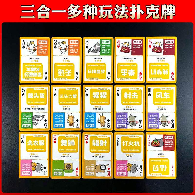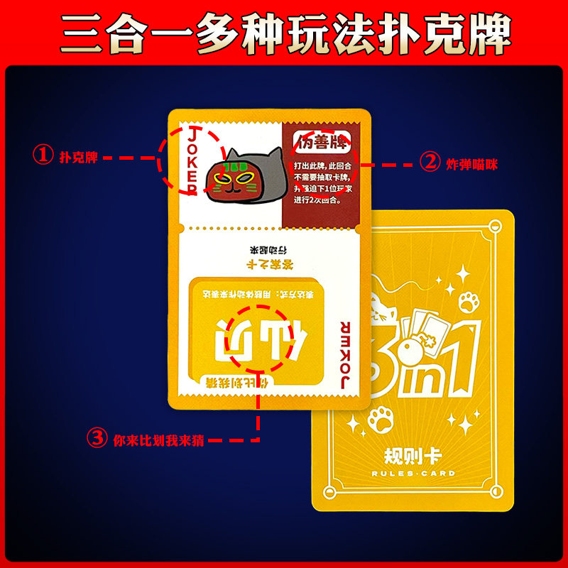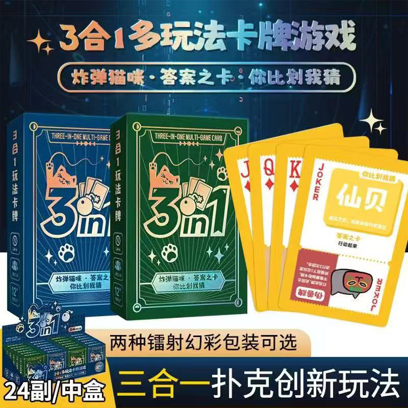 📚 桌游卡牌3合1多玩法扑克牌炸弹猫咪你来比划我来猜答案之卡游戏牌