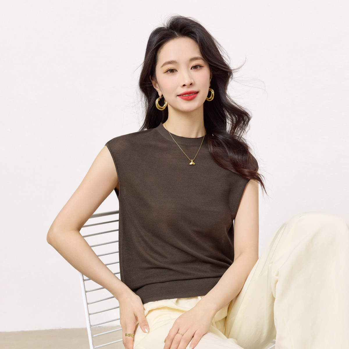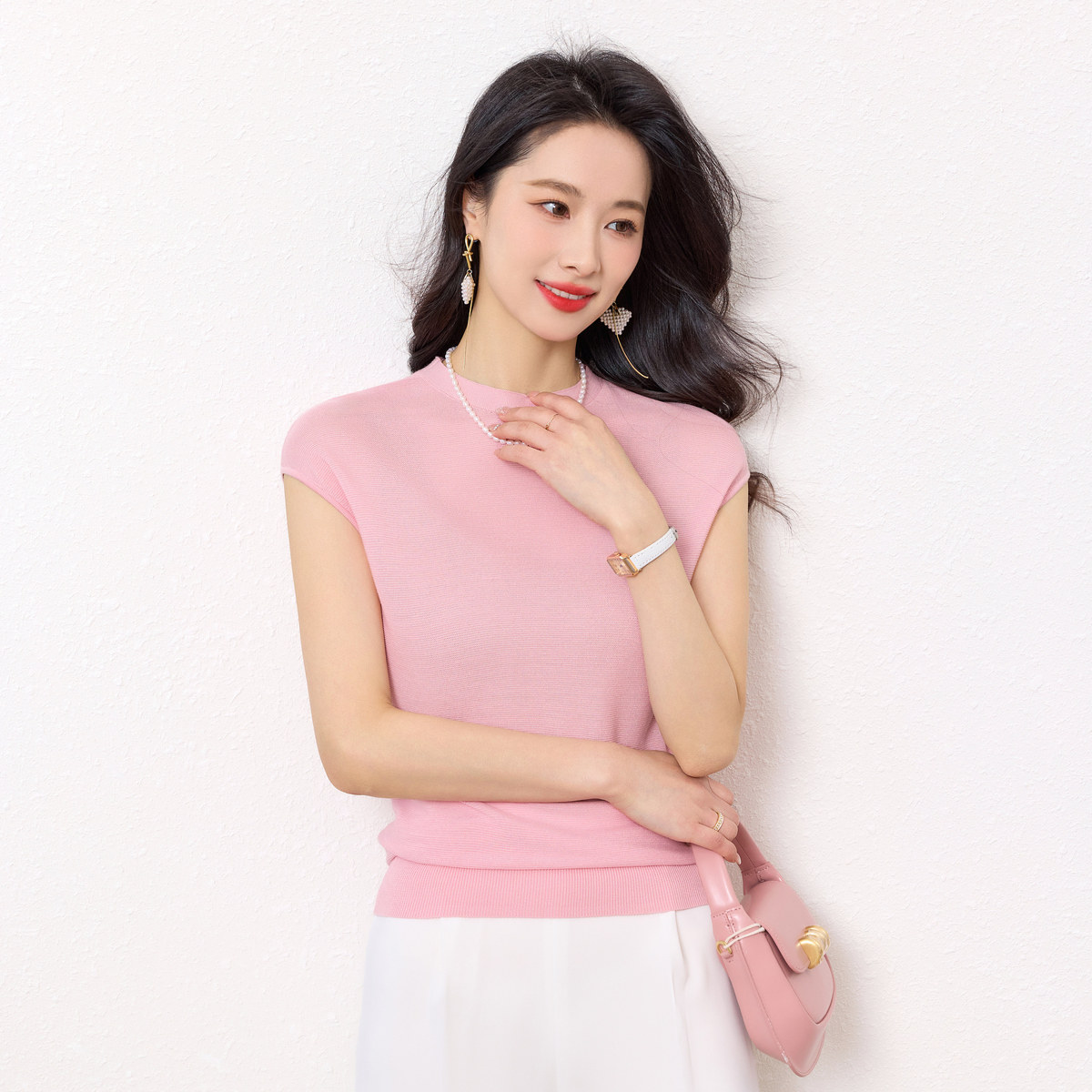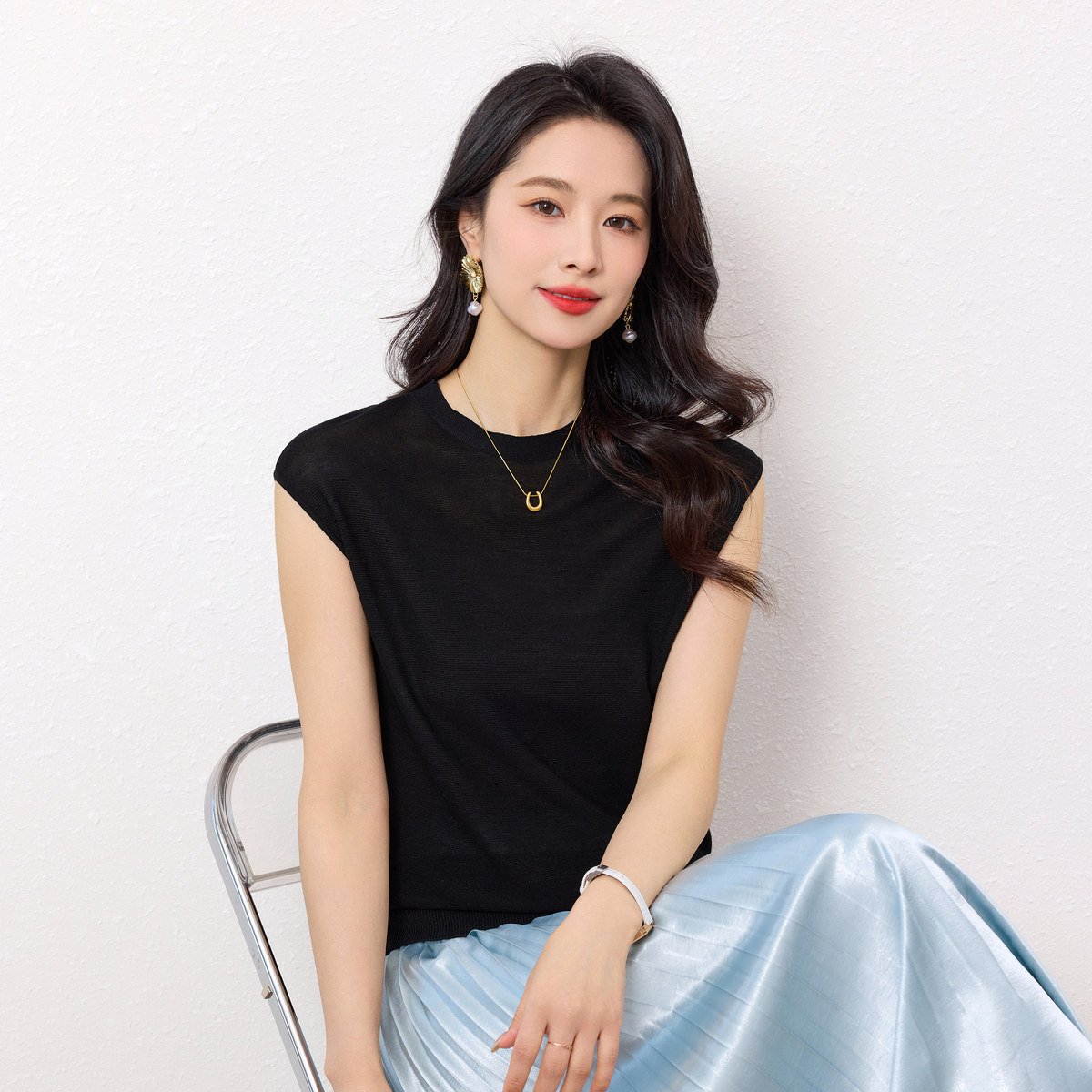 📚 春竹桑蚕丝混纺上衣女春季新款圆领包肩袖薄款透气短袖T恤针织衫