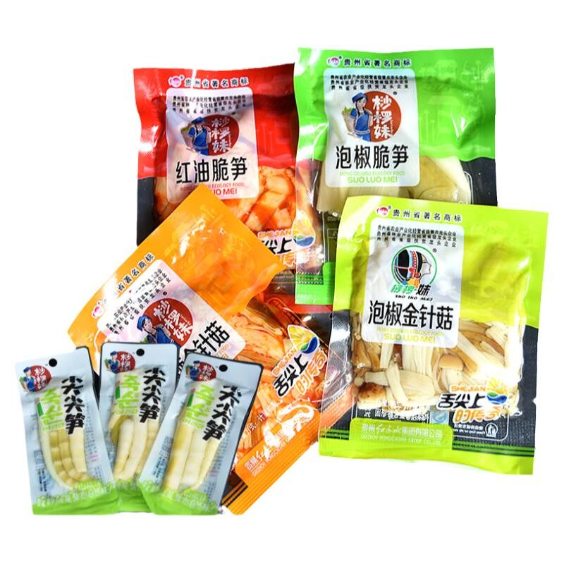 📚 贵州特产小吃休闲零食桫椤妹金针菇麻辣香辣泡椒味红油脆笋500克