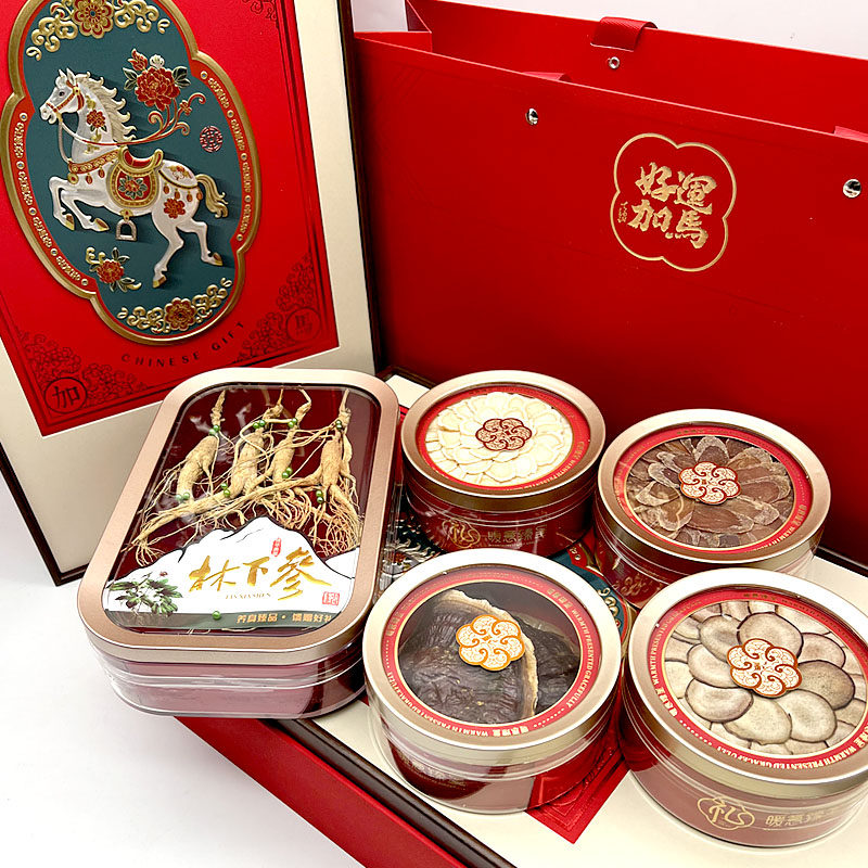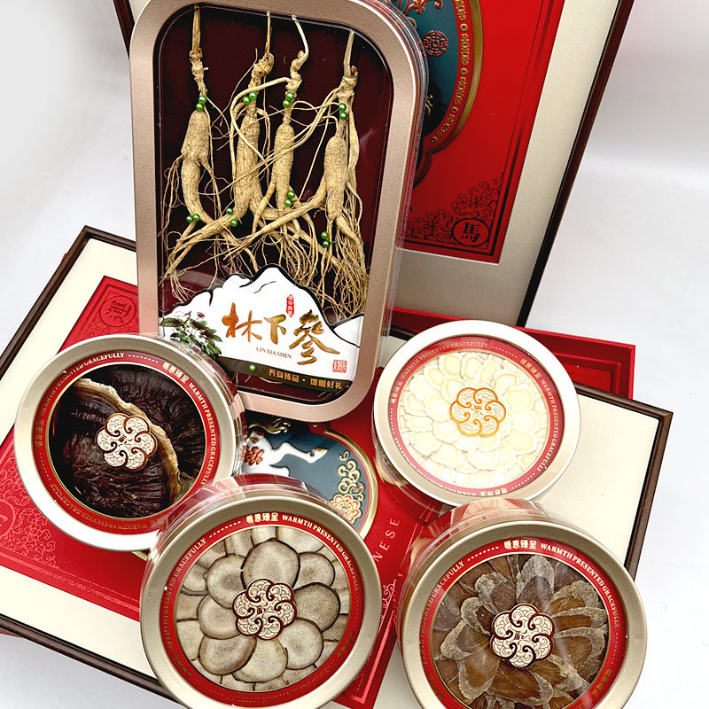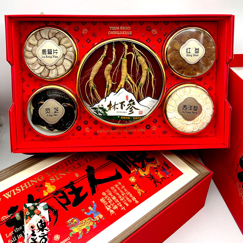 📚 吉林人参长白山林下参西洋参片灵芝鹿茸片五宝礼盒新年礼品送长辈