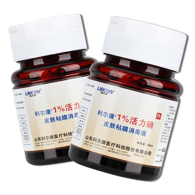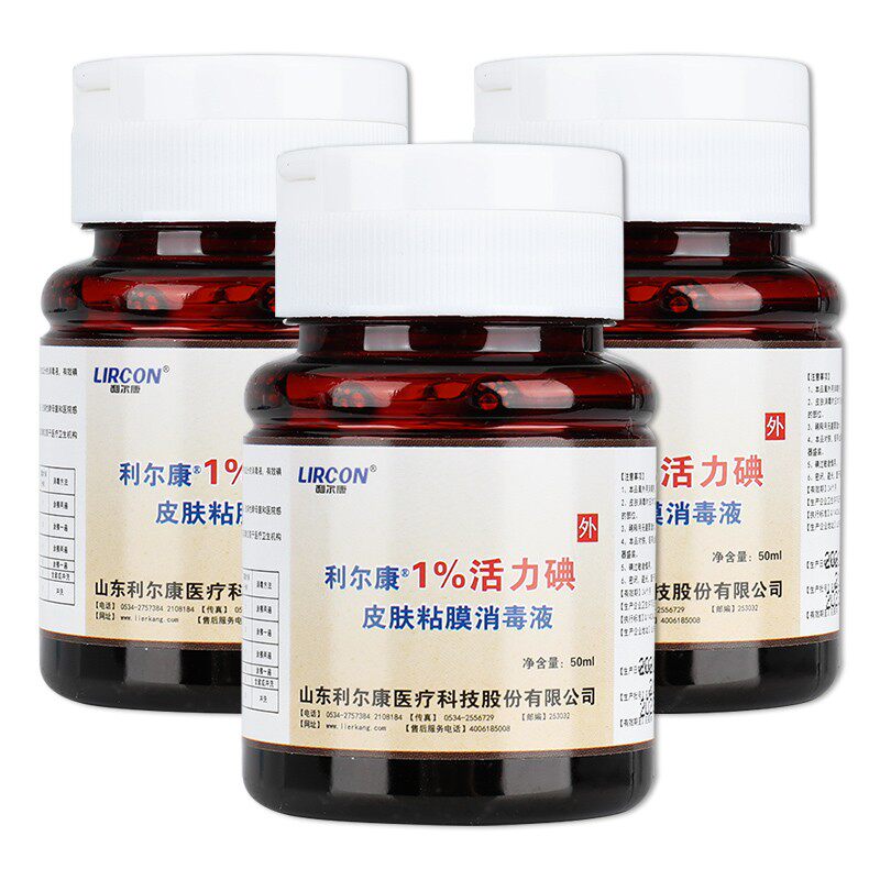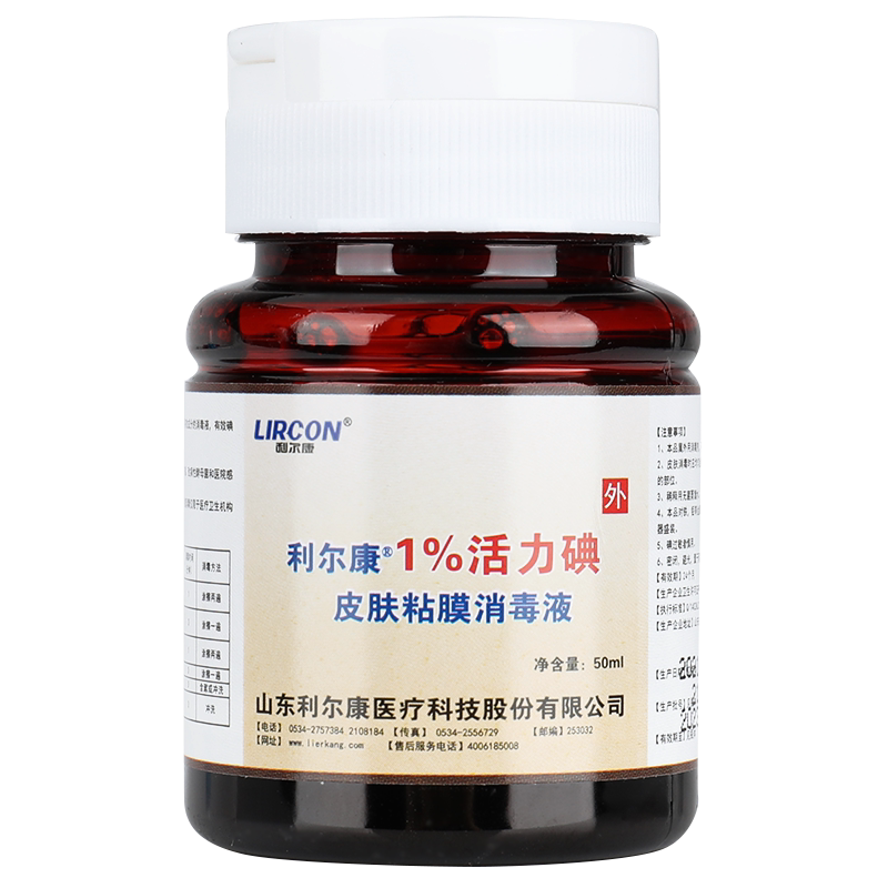 📚 利尔康1%浓度活力碘皮肤粘膜消毒液50ml 医用 伤口消杀菌碘伏液GL