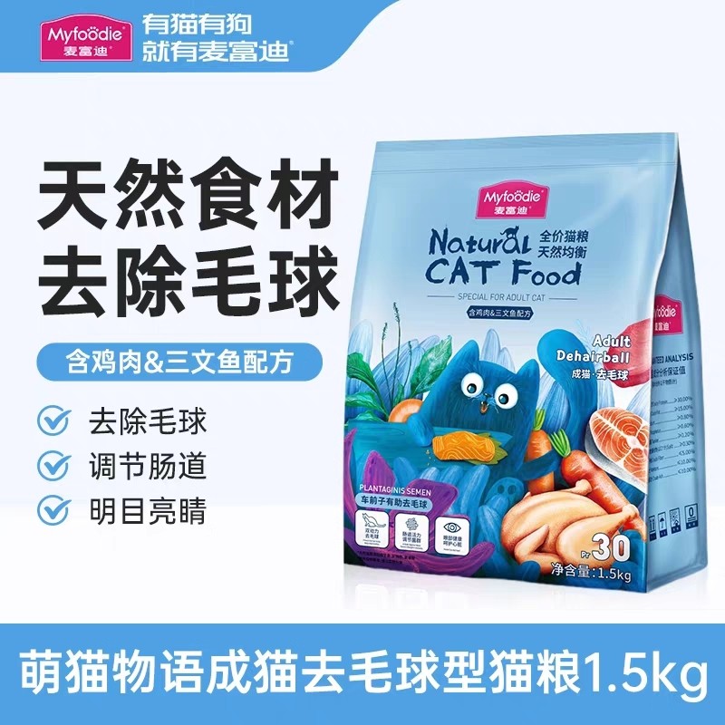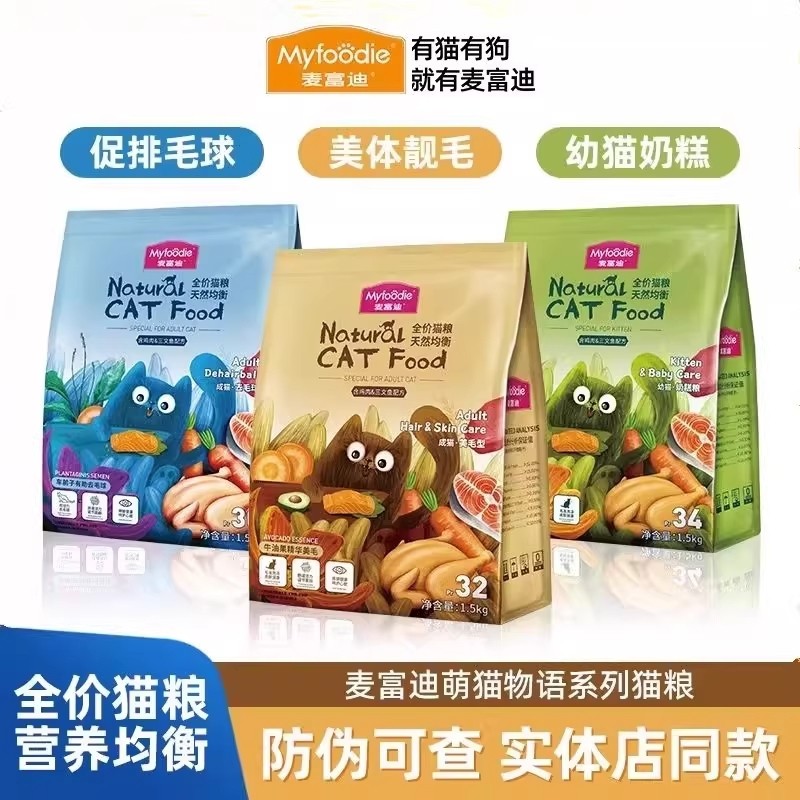 📚 萌猫物语麦富迪猫粮成幼猫美毛去毛球奶糕全价流浪猫1.5kg/500g