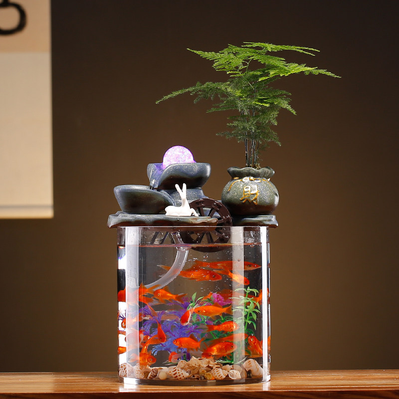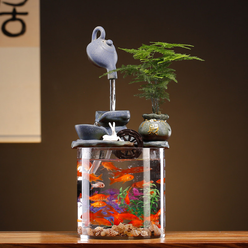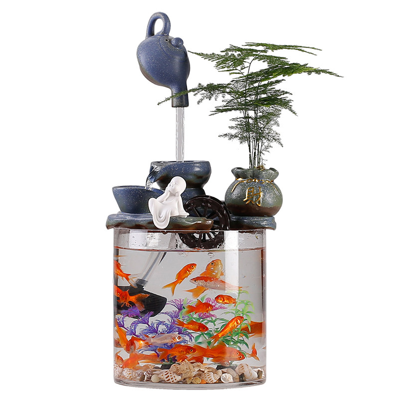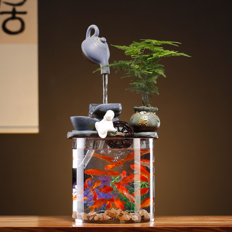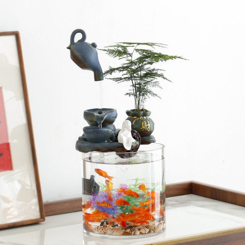 📚 悬壶流水循环水招财小型鱼缸生财客厅办公室桌面微景观装饰品