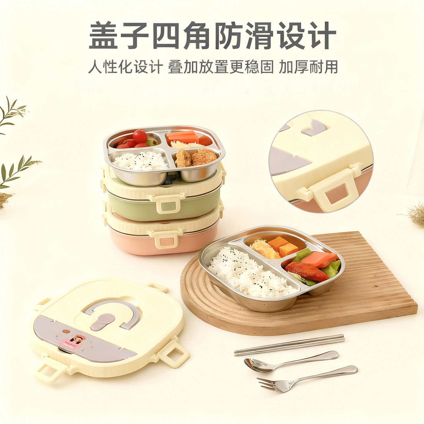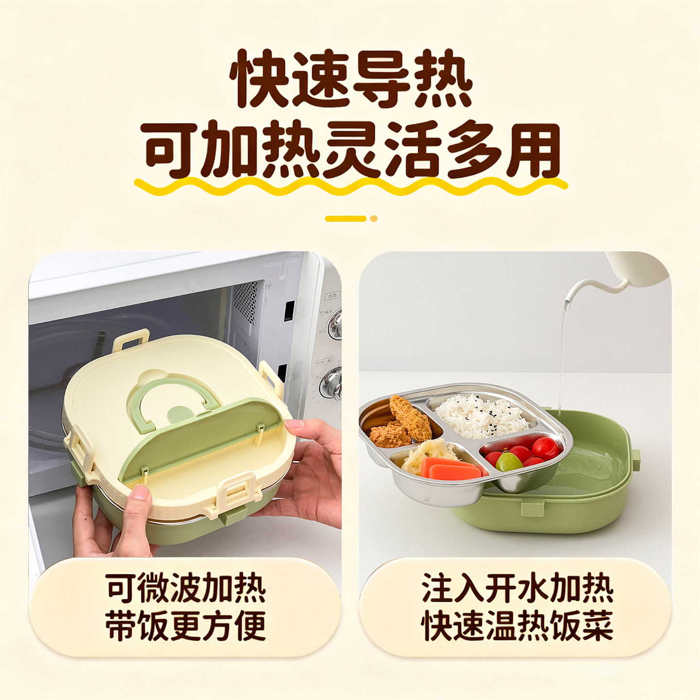 📚 304不锈钢分格餐盘带盖食堂打饭专用小学生儿童保温饭盒碗上班族
