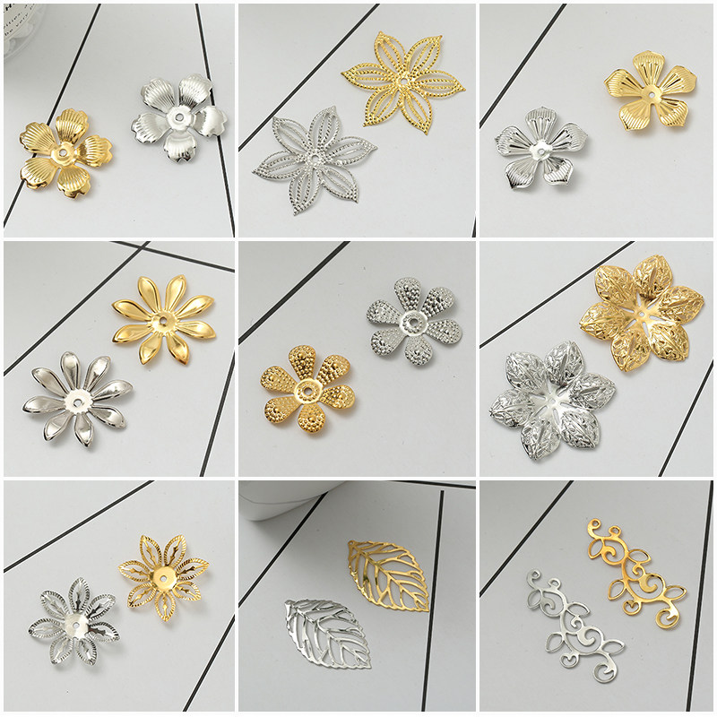 📚 花朵金属片花托diy手工制作发簪头饰材料发冠花珠托发夹饰品配件