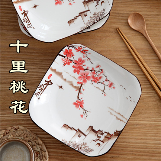 📚 釉下彩陶瓷盘子创意餐具套装色釉家用圆盘碟四方盘子菜盘安全健康