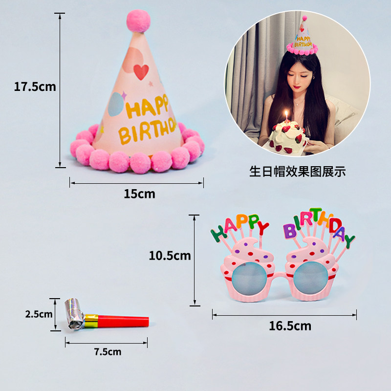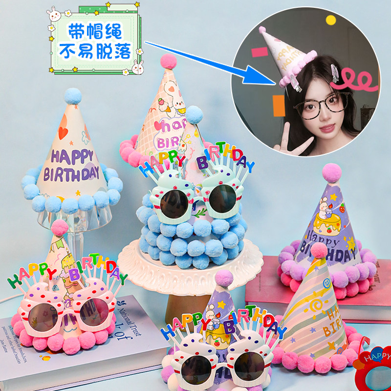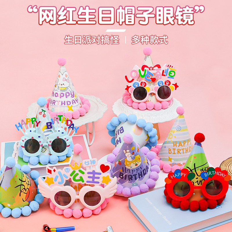 📚 生日帽子蛋糕装饰新款节日派对装饰儿童场景布置创意眼镜拍照道具
