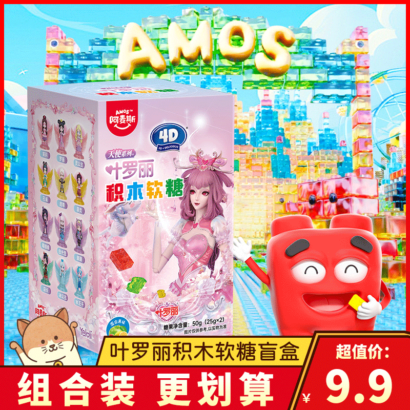 📚 阿麦斯4D积木果汁软糖叶罗丽天使玩具盲盒手办混合果味橡皮糖盒装