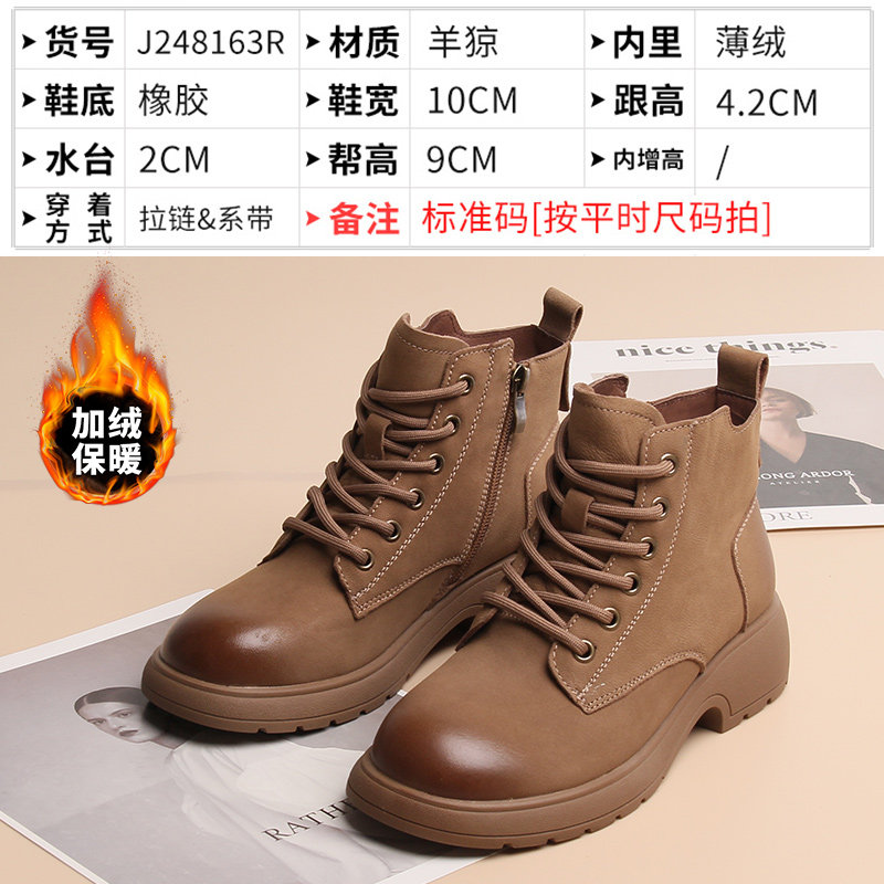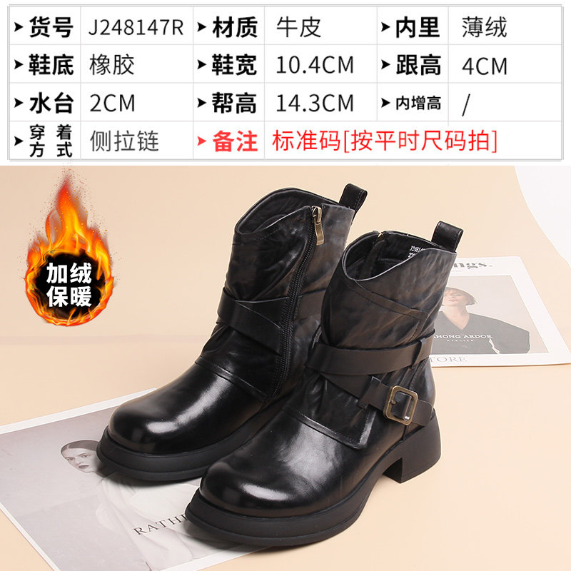 📚 嘉俪多女鞋断码清仓38码冬季短靴英伦时尚牛皮加绒春季皮里欧美